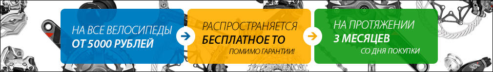 В нашем магазине существует гибкая система скидок и накопительных бонусов для постоянных покупателей. Особенно часто клиенты пользуются скидкой на покупку второго велосипеда, также выгодно купить сразу 2 велосипеда. У нас есть программа дополнительных бонусов, которая предполагает бесплатное техническое обслуживание для клиентов, которые приобрели товар на сумму более 5000 рублей, в течение 3 месяцев с момента покупки без учета гарантийных обязательств. Таких выгодных условий в других магазинах нет!