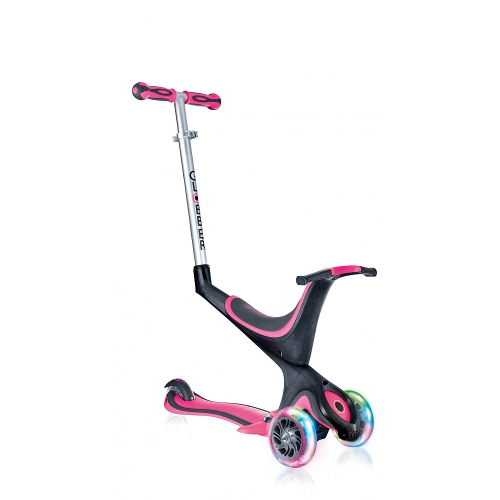 Великолепный детский самокат со светящимися колесами Globber My Free 5 in 1 станет универсальным решением для растущего ребенка. Уже с 12 месяцев можно катать ребенка, используя пластиковое сиденье и поддерживающую Т-ручку, когда ребенок подрастет и освоится ручку можно убирать, оставив только сиденье. Впоследствии можно установить Т-образную ручку с регулировкой высоты и кататься на нем как на обычном самокате. Сиденье и платформа изготовлены из ударопрочного пластика, ручка выполнена из алюминия. Диаметр полиуретановых колес 121/80 мм, с подшипниками ABEC 5. Максимальная нагрузка: 20 кг на сиденье / 50 кг на платформу. Цвет: зеленый, розовый, синий.