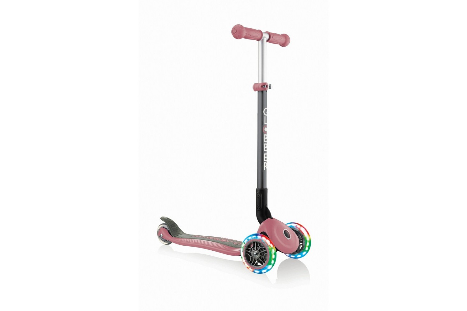 Самокат Globber Primo Foldable Fantasy Lights - это детская трехколесная модель устойчивой конструкции, которая подойдет для малышей возрастом 3-7+ лет. Рама подходит для юных райдеров ростом от 95 до 120 см. Максимальная нагрузка на раму: до 50 кг. Вес самоката - 2,5 кг. Основные характеристики модели:
