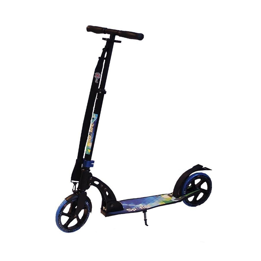 Самокат Explore Spitfire отличается от прочих моделей более прочной и стабильной конструкцией алюминиевой рамы, а также максимально надежным складным механизмом. Он подойдет райдерам весом до 100 кг. Размеры деки 15х57 см дают с комфортом разместить обе ноги. Руль настраивается по высоте до 92 см. На Spitfire установлены полиуретановые колеса жесткостью 82А, диаметром 205 мм, на которых используются накатистые подшипники ABEC 7. Тормоз с помощью заднего крыла эффективен и прост. Переносить самокат удобно с помощью наплечного ремешка, запарковать его поможет специальная складная подножка. Вес модели - 6 кг.