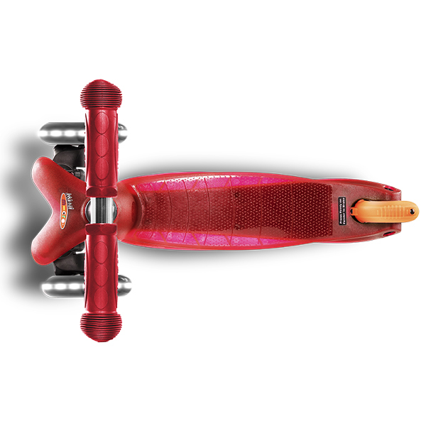 Классный детский самокат Mini Micro LED способен украсить совместные прогулки с вашим ребенком. Им легко управлять, он устойчив за счет двух больших передних колес, которые к тому же светятся при катании! Платформа самоката выполнена из стеклопластика, имеет размеры 30 х 11 см, ее рельефная поверхность препятствует проскальзыванию. Высота руля фиксированная - 67 см. Колеса - 120/80 мм (полиуретан). Допустимая нагрузка на самокат - 20 кг. Клиренс - 2,5 см. Подойдет для детей возрастом 2-5 лет. Вес: 1,9 кг.