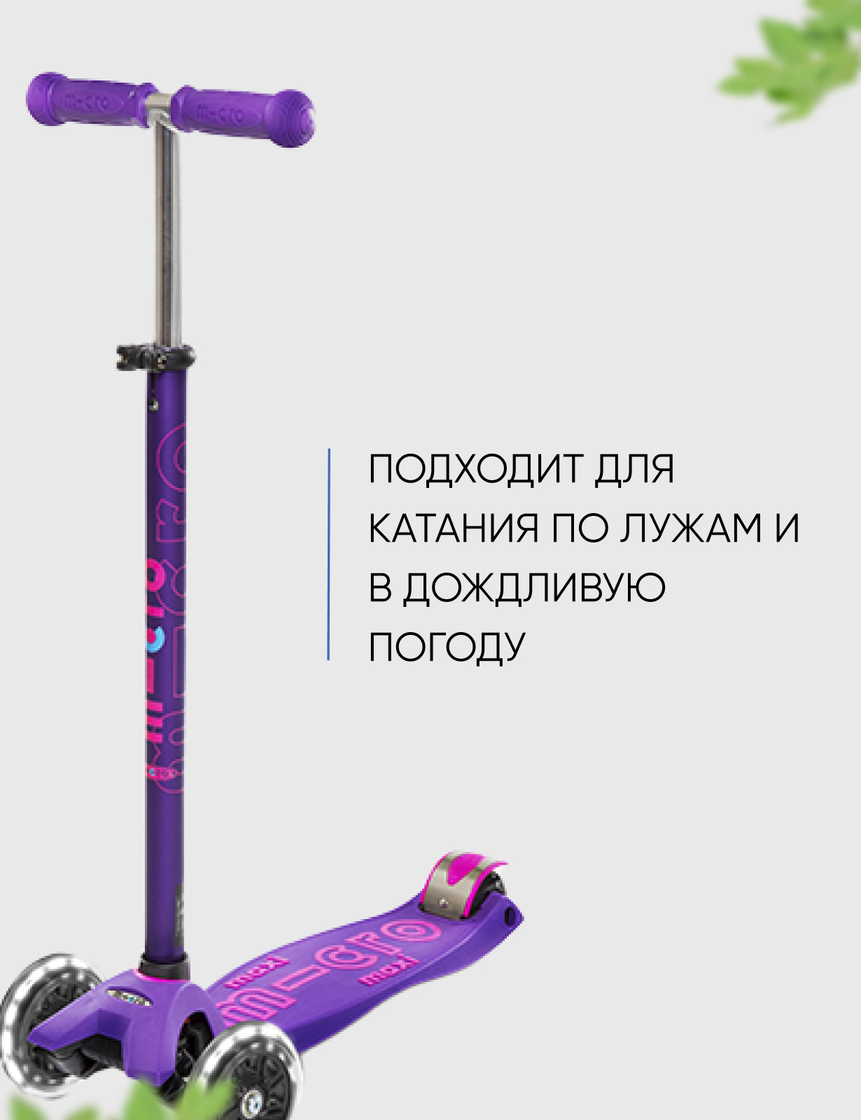Самокат Maxi Micro Deluxe LED это идеальный кикборд для активного отдыха детей в возрасте от 4 до 12 лет. Он оснащен светящимися колесами, которые делают каждую прогулку веселее и безопаснее в темное время суток.