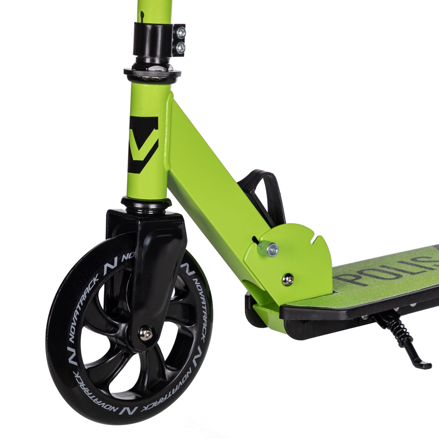 Городской самокат Novatrack Polis 160 Plastic создан специально для детей старше 6 лет, становясь идеальным спутником для активных прогулок в парке или по городу. Модель сочетает в себе надежность стальной рамы и вилки с легкостью пластиковых элементов, выдерживая нагрузку до 50 кг. Весит самокат всего 3,9 кг. Просторная дека (50 х 12,5 см) с противоскользящим покрытием обеспечивает устойчивое положение ног, а полиуретановые колеса диаметром 160 мм на подшипниках ABEC-7 гарантируют плавный и комфортный ход даже по неровностям. Руль регулируется по высоте (74,5–83,5 см), легко подстраиваясь под рост ребенка, а складные ручки с фиксаторами добавляют удобства при хранении и транспортировке. Яркий дизайн подчеркнет индивидуальность юного райдера, а регулярные поездки помогут развить координацию, моторику и укрепить иммунитет благодаря свежему воздуху.