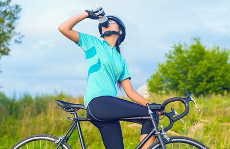 5. Пейте больше воды. Во время катания, вне зависимости от интенсивности езды, пейте обычную воду. Делайте несколько интенсивных глотков каждые 15-20 минут. Это необходимо для поддержания уровня жидкости в организме, что особенно актуально для коленных суставов (которые постоянно под нагрузкой), именно на их здоровье негативно отражается даже самый начальный процент обезвоживания.