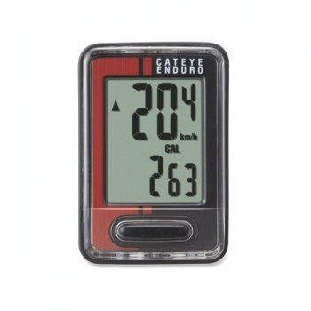 Велокомпьютер CAT EYE CC-RD 200 (STRADA). Функции: скорость(текущая/средняя/максимальная), общее расстояние (одометр), расстояние поездки 1, 2, частота вращения педалей (Cadence), затраченное время, часы (12/24). К особенностям относятся: надежные проводные датчики скорости и каденса (Cadence), сенсорный дисплей (ClickTec), автоматический старт/стоп, автоматический режим энергосбережения, кронштейн Flextight ™ монтируется практически на любой вынос руля, без использования инструментов, темп стрелки, двойной размер шин, батарейка типа CR1620 ( датчик и компьютер), вес около 18 гр.