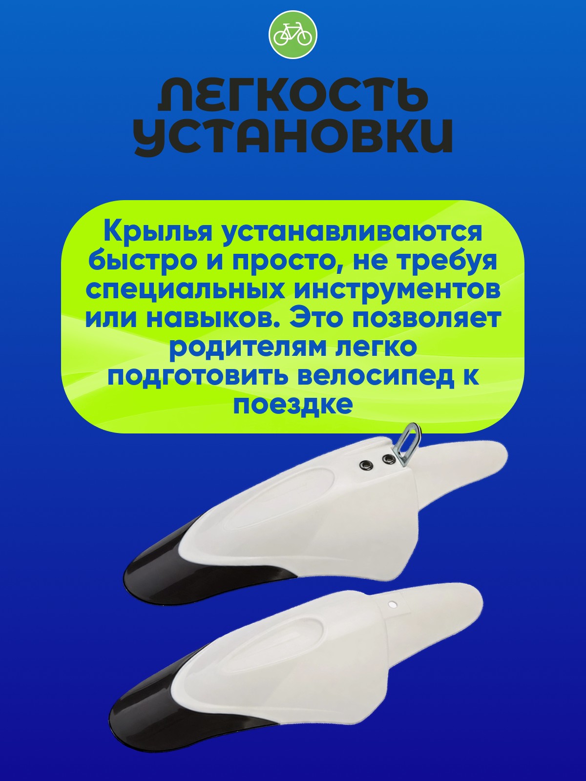Крылья устанавливаются быстро и просто, не требуя специальных инструментов или навыков. Это позволяет родителям легко подготовить велосипед к поездке.