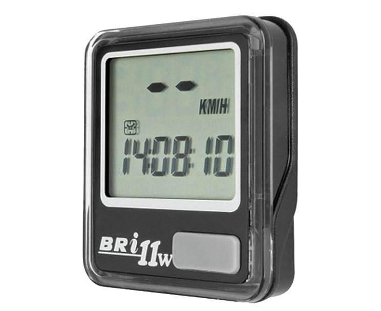 Велокомпьютер BRI-11W станет надежным помощником и спутником ваших велопутешествий и поможет отслеживать статистику поездок. Беспроводная модель быстро крепится на руль и передает данные с помощью магнитного датчика, закрепляемого на колесе. BRI-11W имеет 11 полезных функций: текущая/средняя/максимальная скорости, пробег за поездку, общее расстояние, время последней поездки, общее время в пути, указатель среднего темпа езды, часы 12/24, калориметр, автосканирование данных. Цвет: черный, черный/белый.