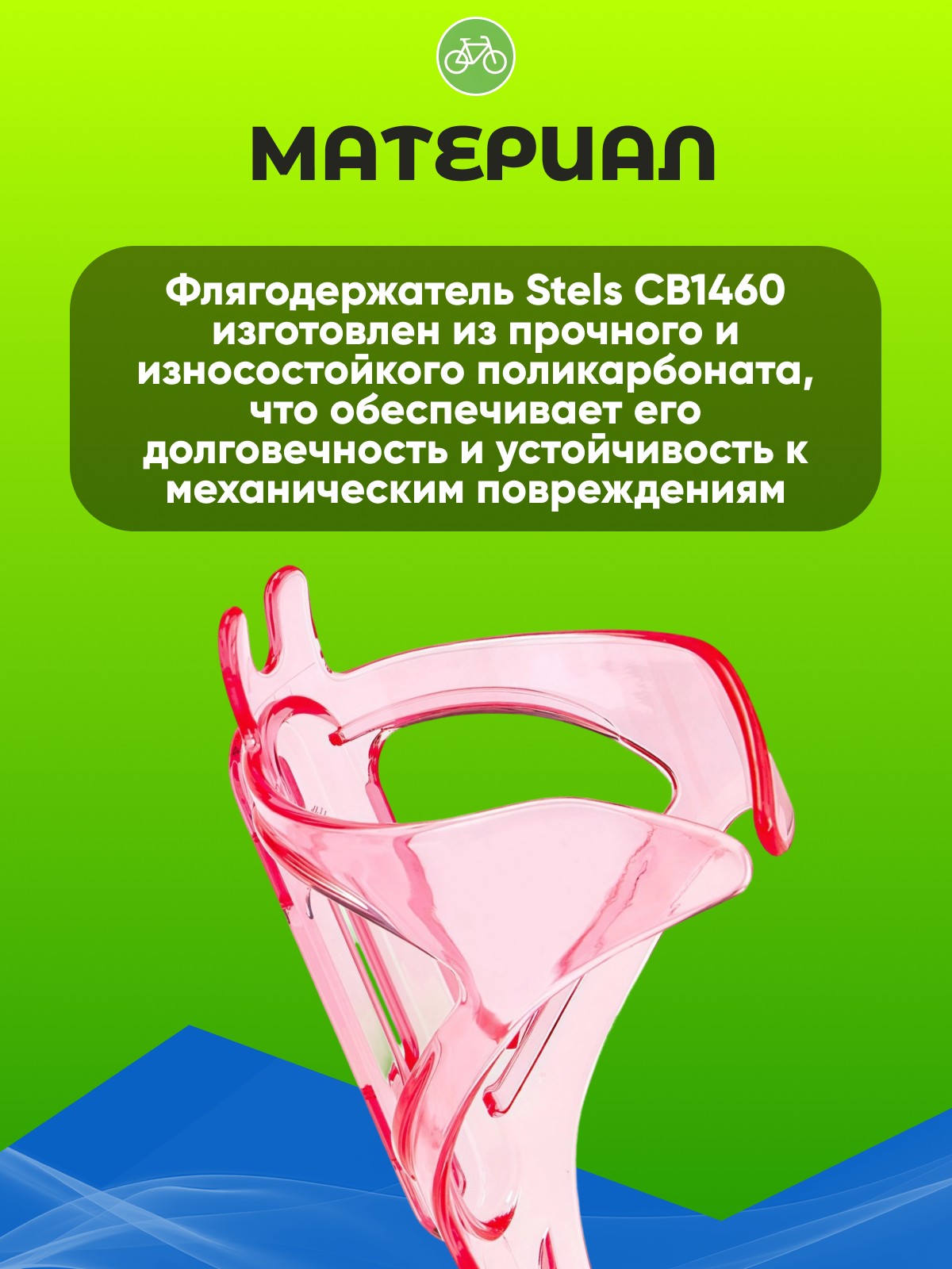 Флягодержатель Stels СВ1460 изготовлен из прочного и износостойкого поликарбоната, что обеспечивает его долговечность и устойчивость к механическим повреждениям.