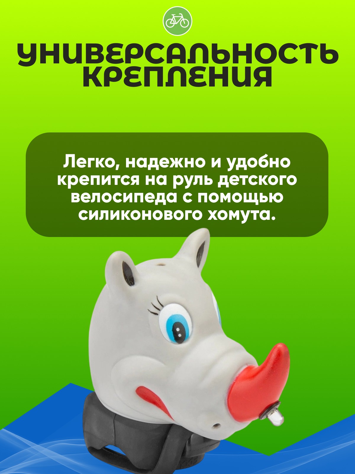 Звонок легко монтируется на руль велосипеда с помощью надежного силиконового хомута, который обеспечивает крепкое и долговечное крепление.
