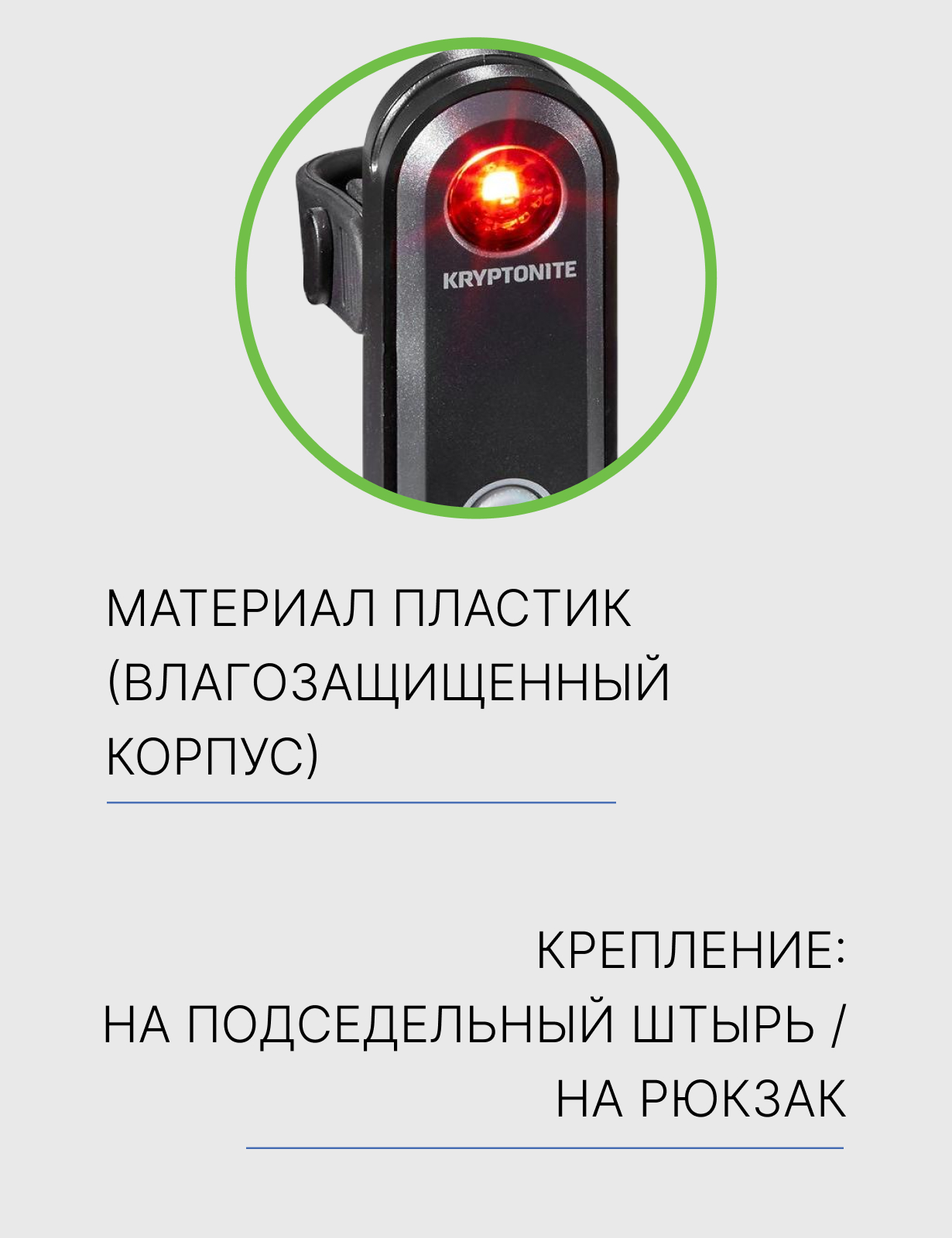 Задний фонарь Kryptonite Avenue R30 — это сочетание продуманного дизайна, удобства и надежности, обеспечивающее безопасность и комфорт в любых дорожных условиях.