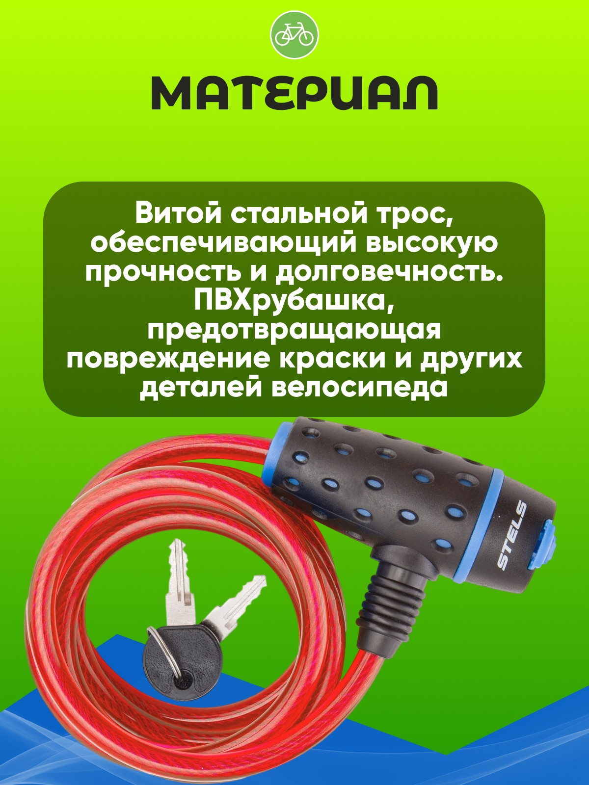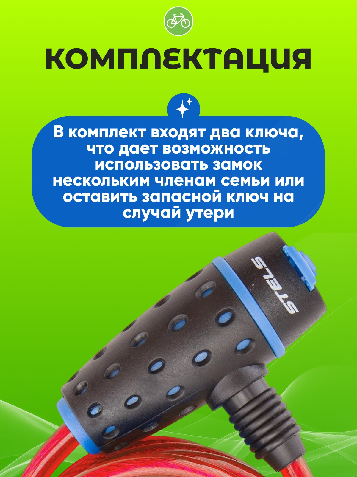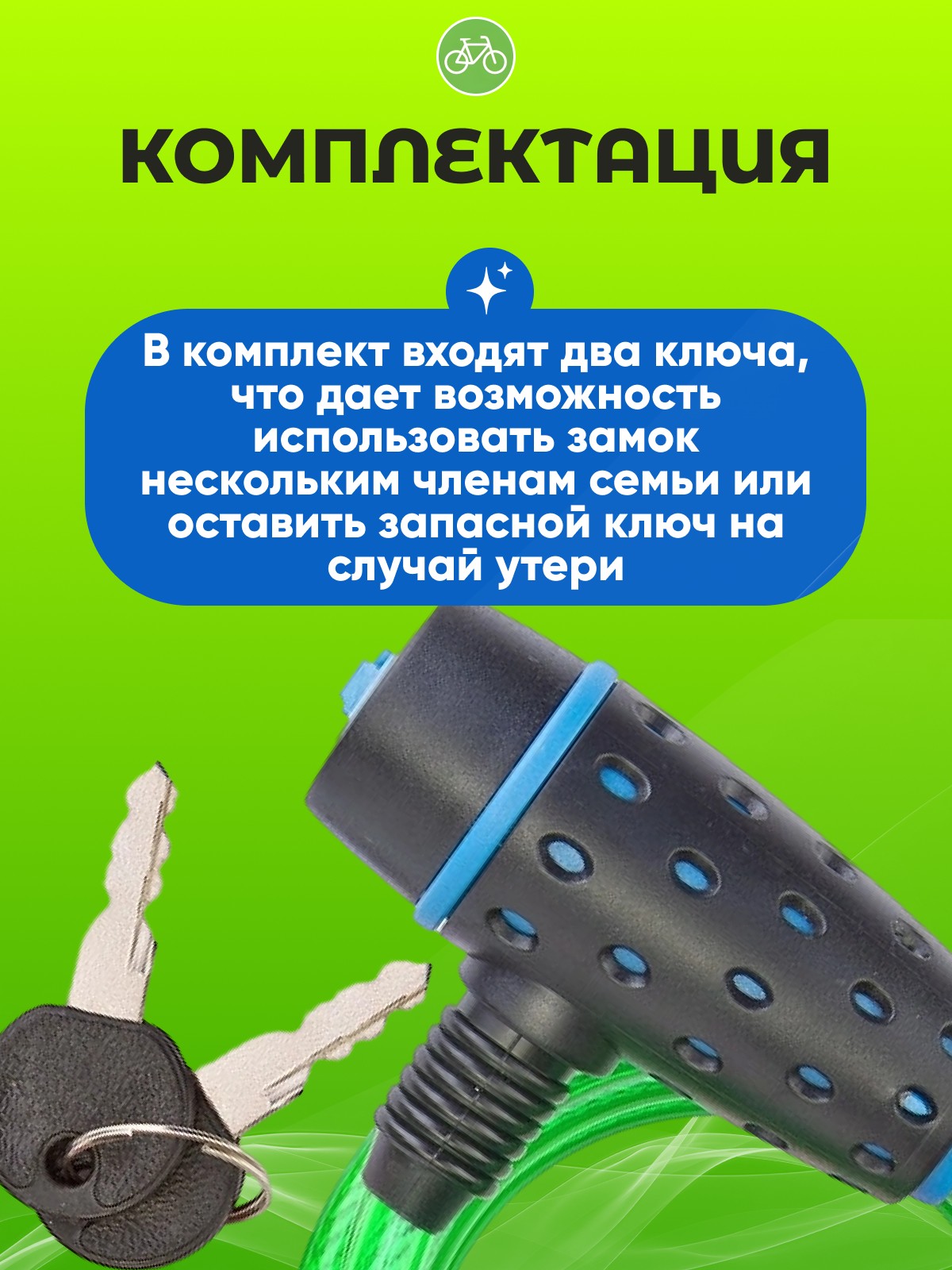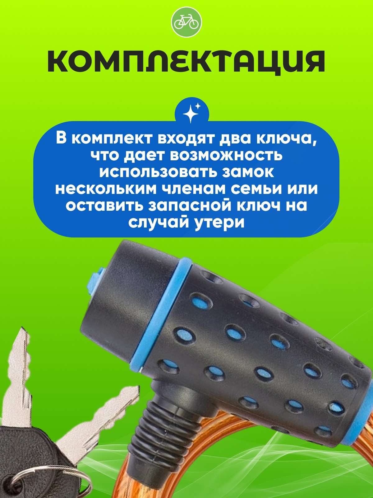 3. Удобство использования: Длина троса достаточна для удобного крепления велосипеда, а два ключа в комплекте обеспечивают дополнительную безопасность.