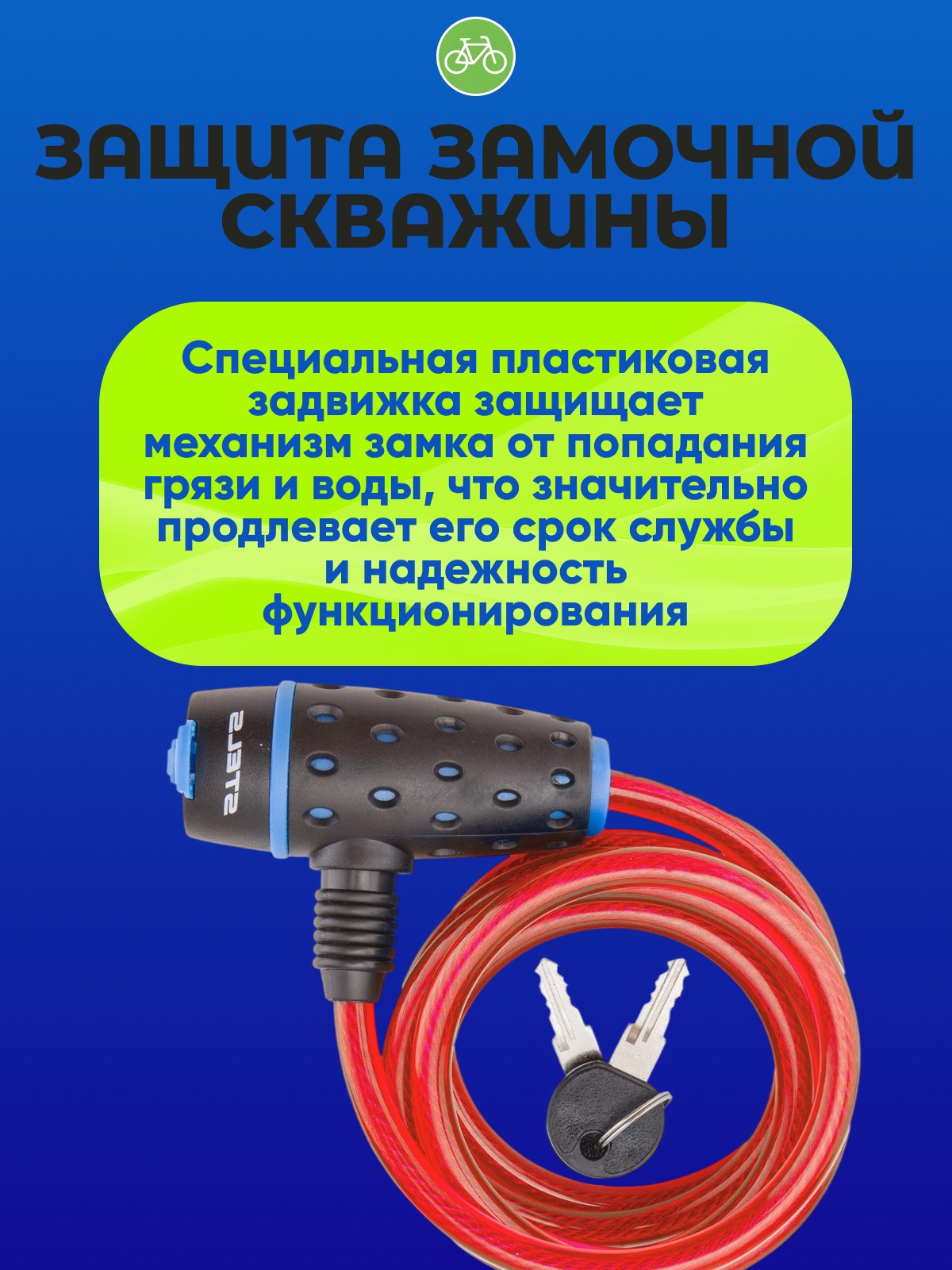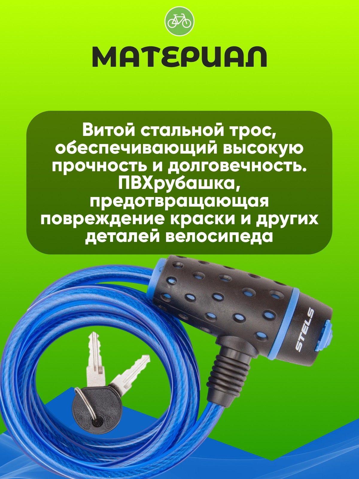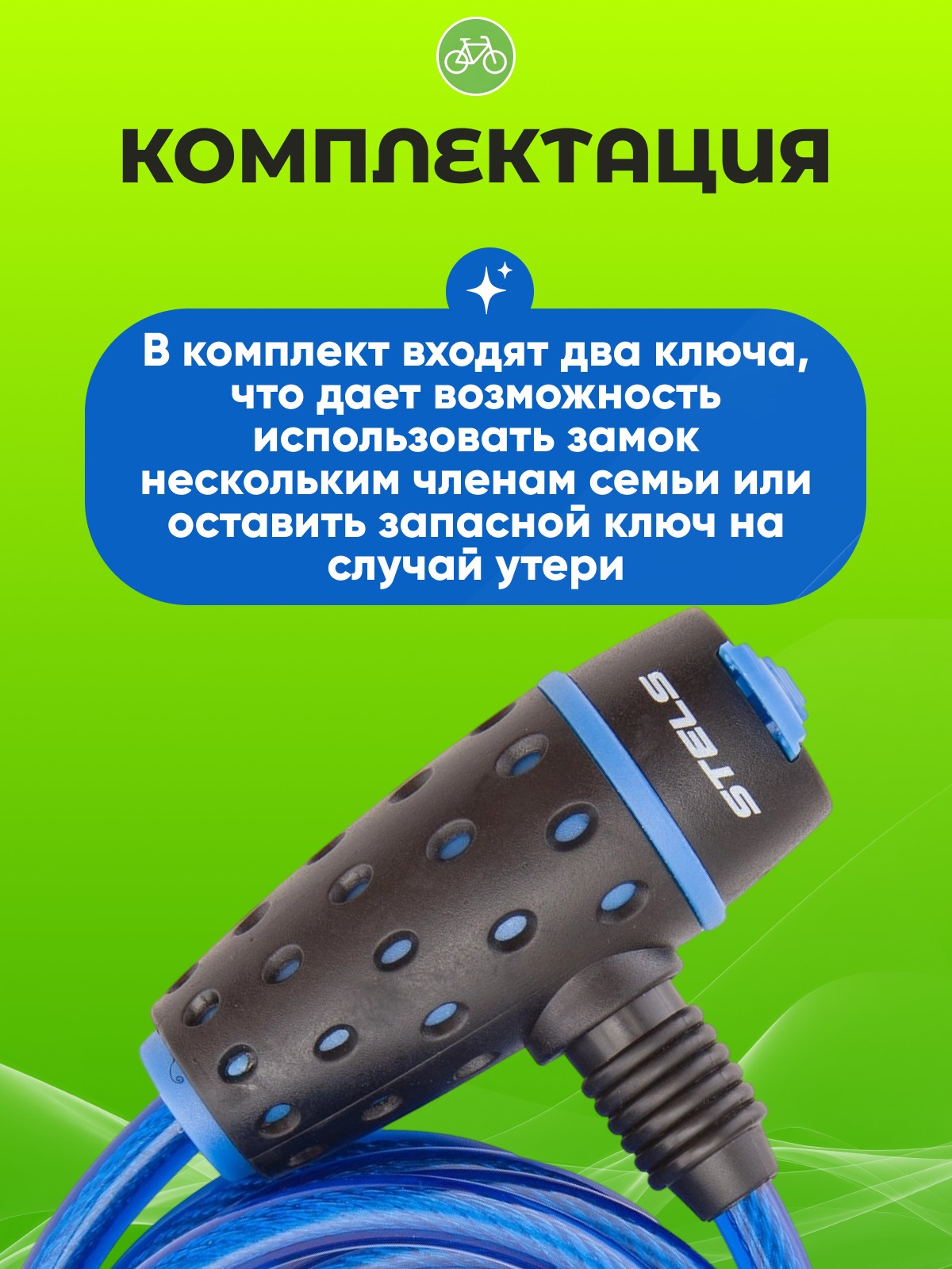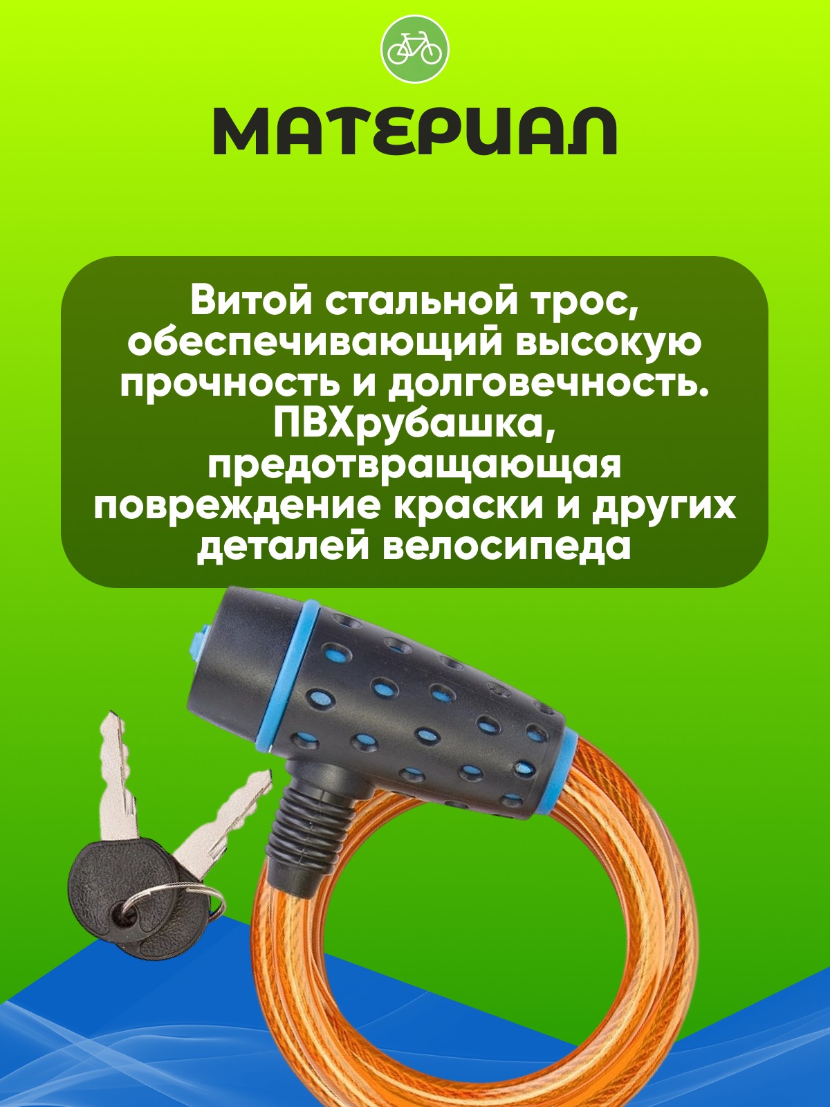 3. Удобство использования: Длина троса достаточна для удобного крепления велосипеда, а два ключа в комплекте обеспечивают дополнительную безопасность.