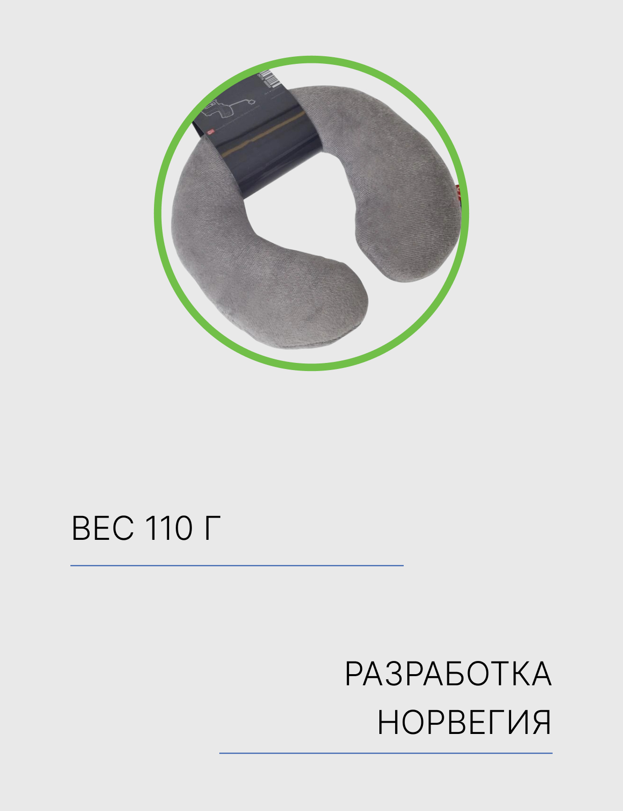 - Безопасность: Надежное и мягкое крепление вокруг шеи фиксирует подушку в нужном положении, исключая возможность соскальзывания или дискомфорта.