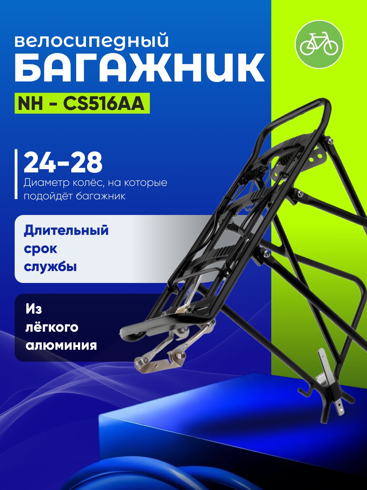 Предназначение багажника велосипедного - закрепление и перевозка вещей на велосипеде. Велобагажник консольный модели NH-CS516AA крепится на подседельный штырь. Хорошо подойдет под диаметр колес 24-28ʺ. Можно устанавливать на велосипеды с 2 амортизаторами. Материал изготовления - алюминий. Цвет - черный.