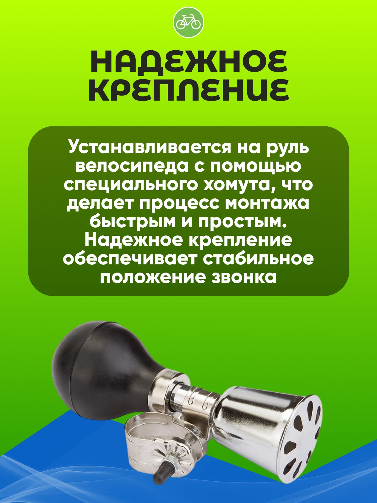 Устанавливается на руль велосипеда с помощью специального хомута, что делает процесс монтажа быстрым и простым. Надежное крепление обеспечивает стабильное положение звонка во время движения, исключая вибрации и лишний шум.