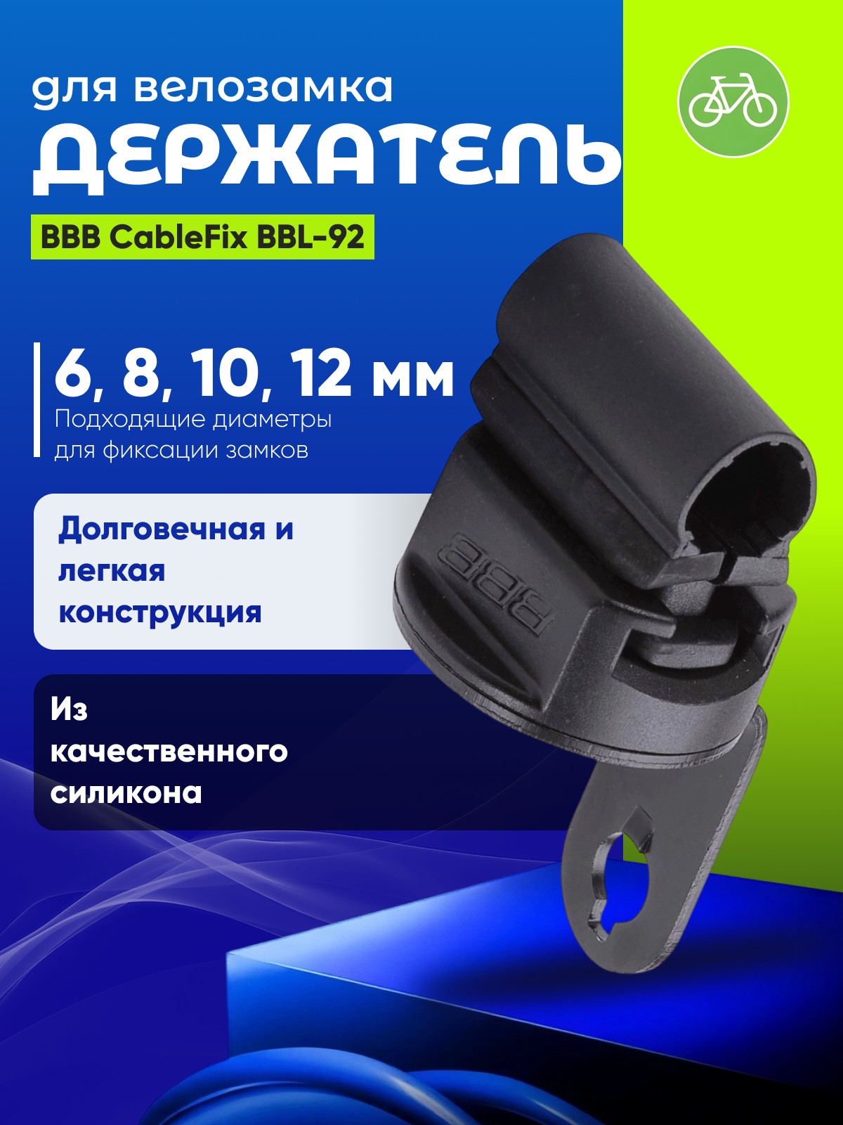 BBB CableFix BBL92 предназначен для фиксации тросовых замков, обеспечивая их надежное крепление и удобство транспортировки. Подходит для тросов диаметром 6, 8, 10 и 12 мм, что делает его универсальным решением для большинства велосипедных замков.
