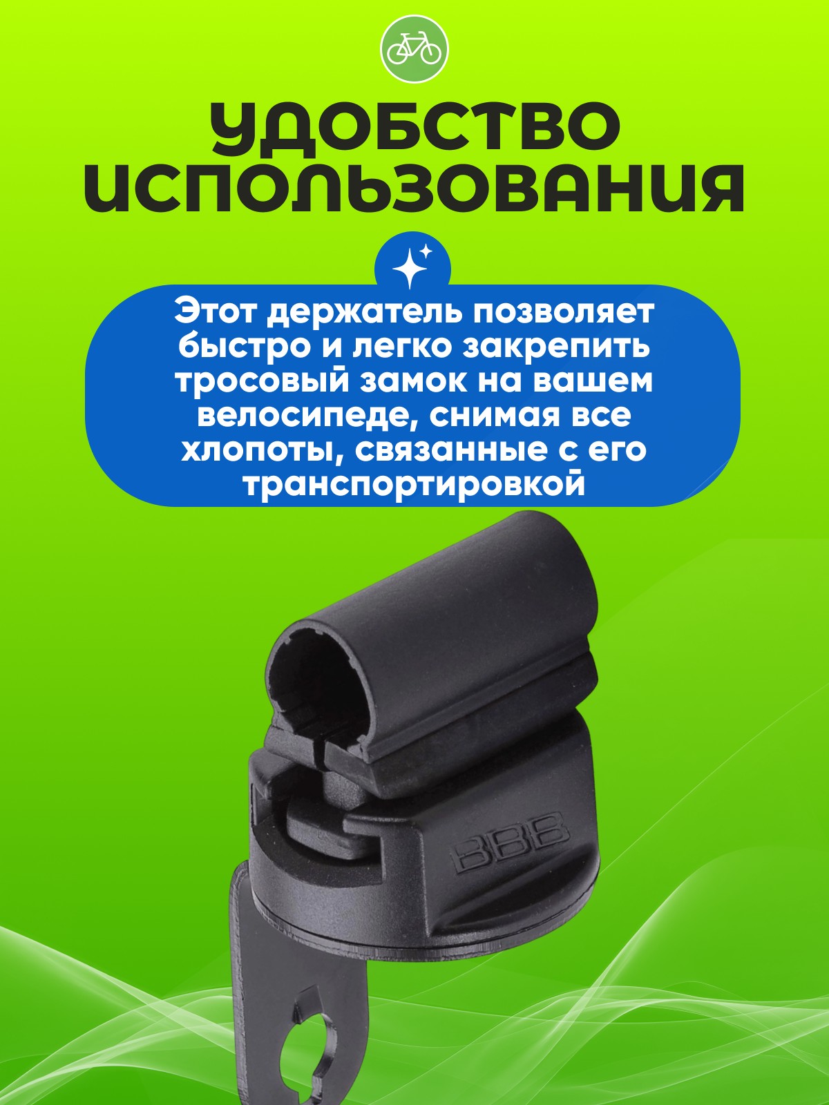 Удобство использования: Этот держатель позволяет быстро и легко закрепить тросовый замок на вашем велосипеде, снимая все хлопоты, связанные с его транспортировкой.