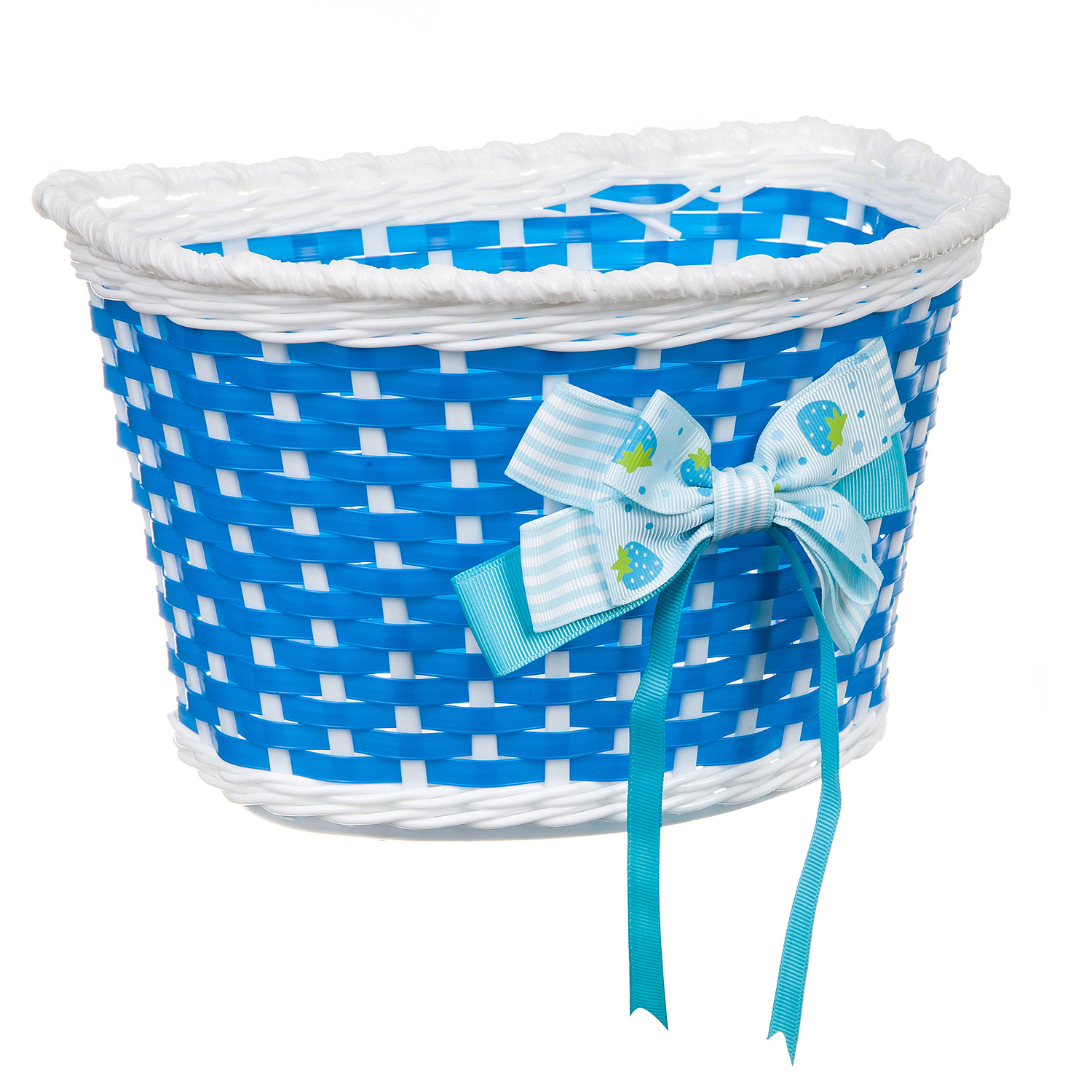 Детская корзинка STG HL-BS02-6 с бантиками безусловно украсит велосипед вашей малышки и поможет перевезти игрушки до ближайшей игровой площадки. Корзинка выполнена из пластика и имеет плетеную структуру. Крепится на руль с помощью двух быстросъемных ремешков. Цвет: голубой.