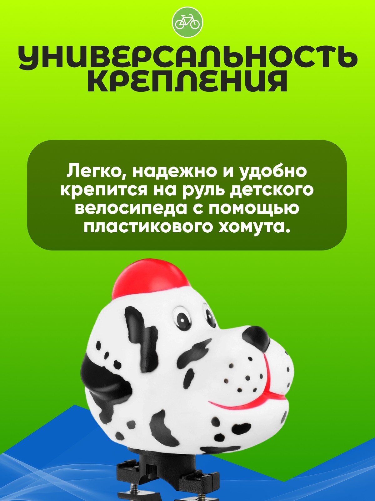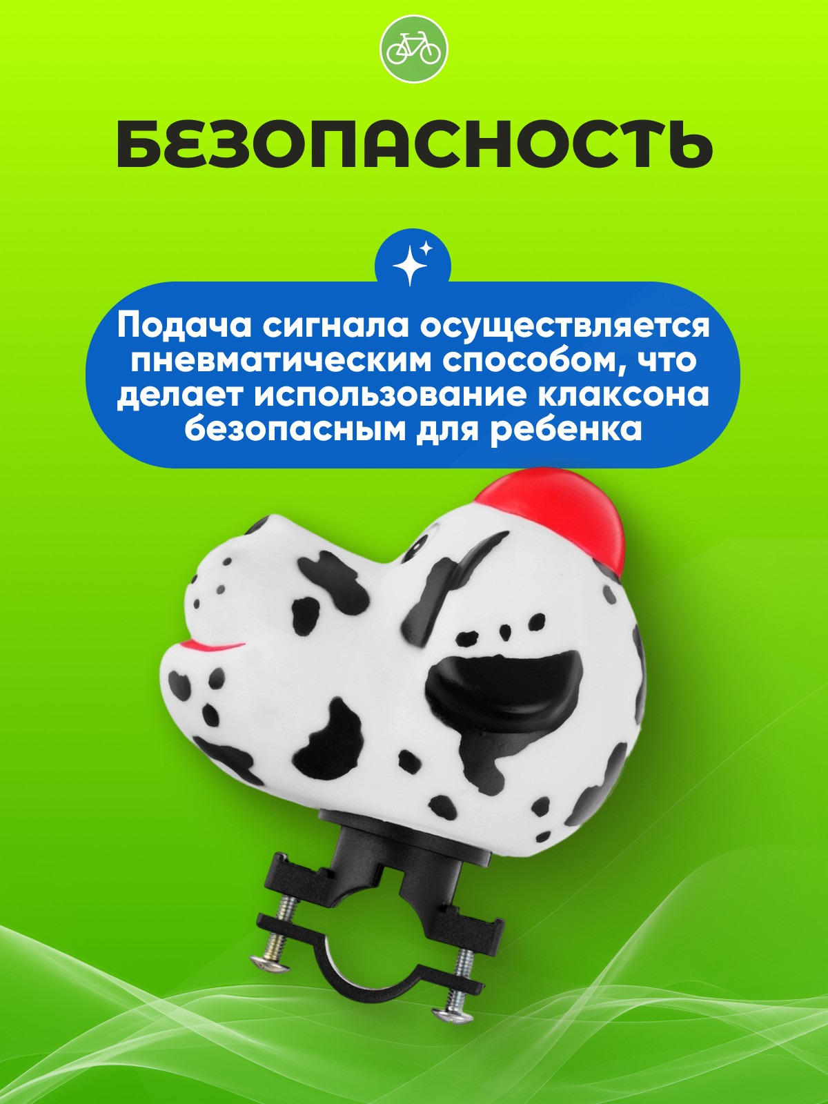 Клаксон SY641A в форме мультяшной собачкидолматинца станет прекрасным дополнением для детского велосипеда. Стильный и яркий аксессуар привлечет внимание и порадует вашего малыша.