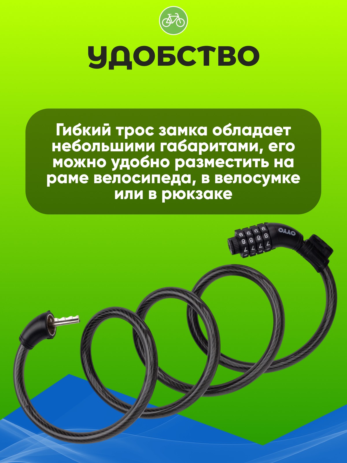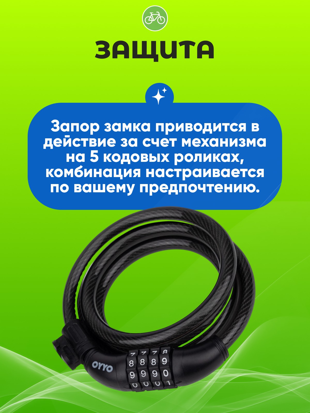 Тросовый замок с четырехзначным кодовым механизмом OYYO CB30 - это удобный и надежный способ защиты вашего байка от воров. Такой аксессуар будет необходимым приобретением, если вы часто катаетесь в городских условиях или работаете в службе доставки. Представляет собой витой стальной трос толщиной 10 мм и длиной 1200 мм, который находится в оболочке из ПВХ. Виниловая оплетка не царапает детали и раму велосипеда. Размеры: 10 x 1200 мм. Черный цвет.