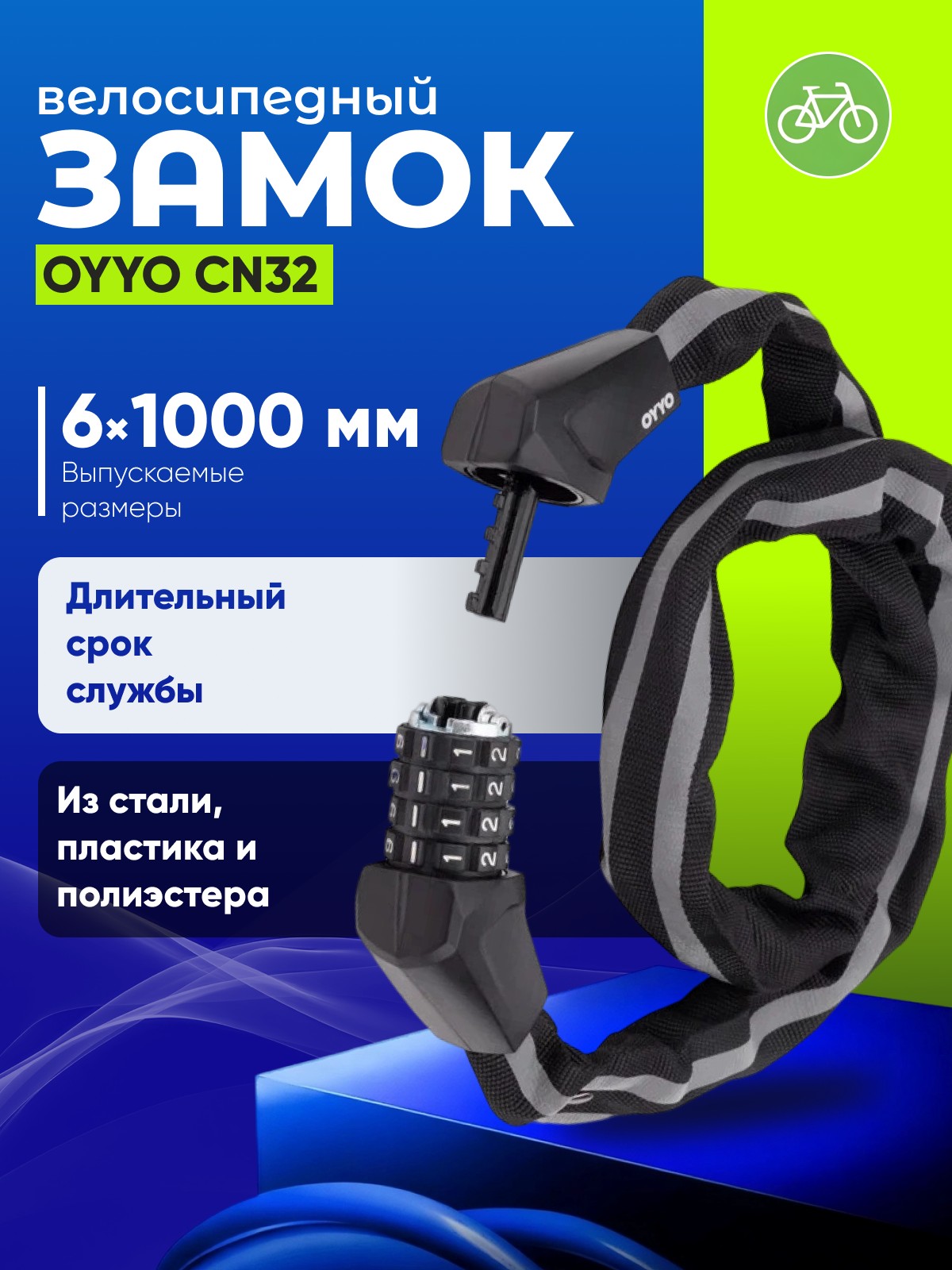 ВелоЗамок OYYO CN32 (6x1000мм) - цепь с кодом