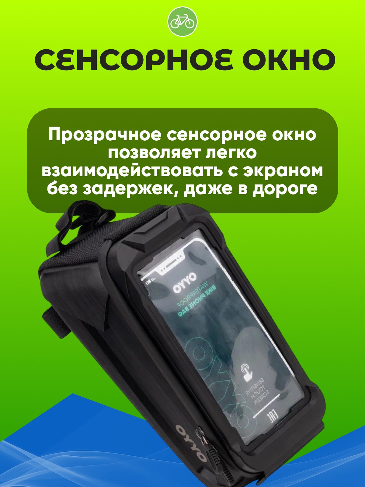Велосумка на раму OYYO BG03 — идеальное решение для велосипедистов, которым важно иметь доступ к своему смартфону и перевозить необходимые вещи. Сумка крепится к верхней трубе рамы и рулевой колонке с помощью надежных ремешков на липучках, что обеспечивает стабильное и безопасное крепление.