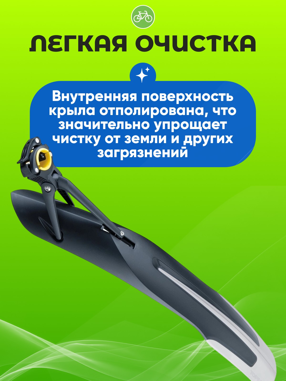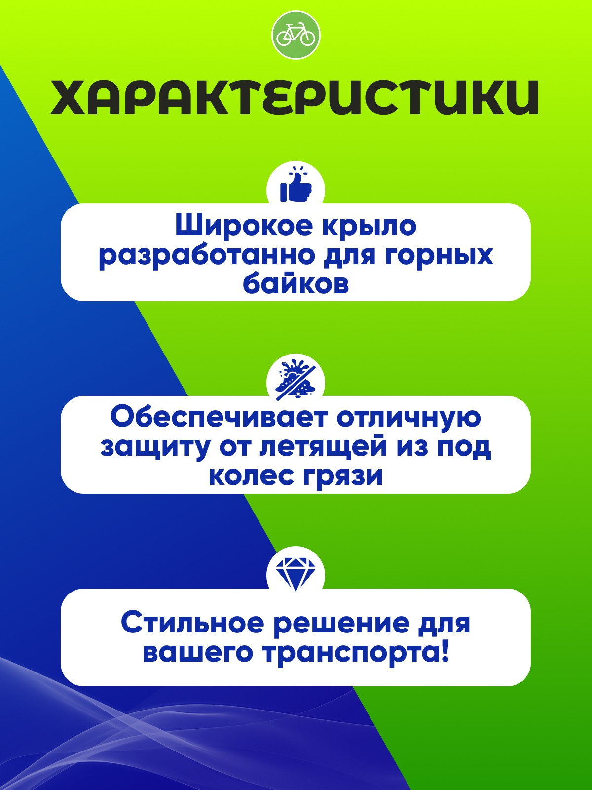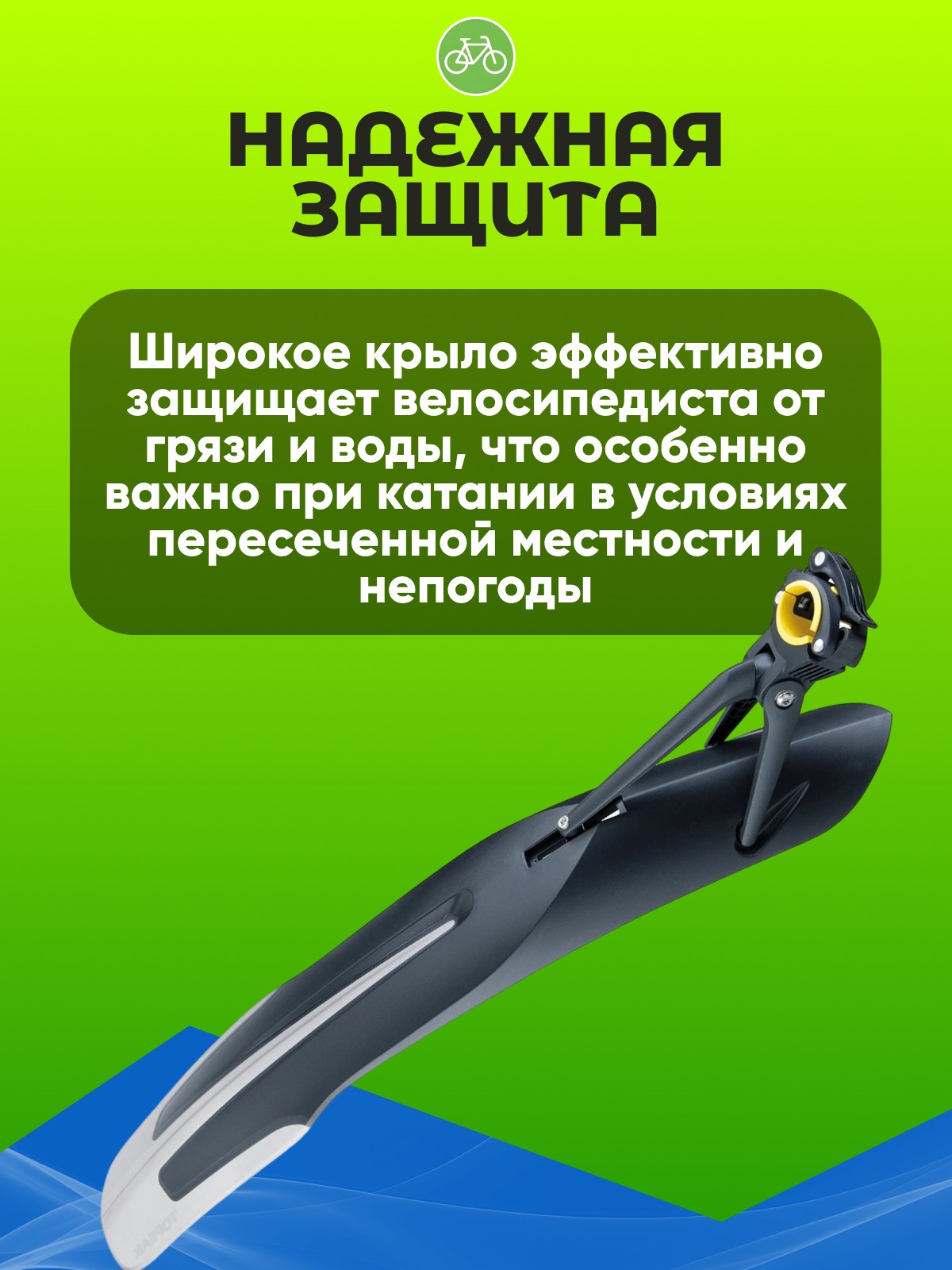 Надежная защита: Широкое крыло эффективно защищает велосипедиста от грязи и воды, что особенно важно при катании в условиях пересеченной местности и непогоды.