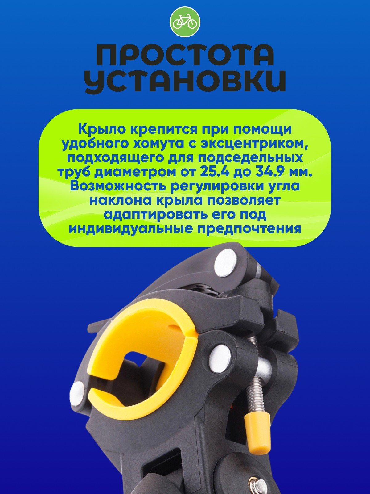 Простота установки: Крыло крепится при помощи удобного хомута с эксцентриком, подходящего для подседельных труб диаметром от Ø25.4 до 34.9 мм. Это делает установку быстрой и простой.