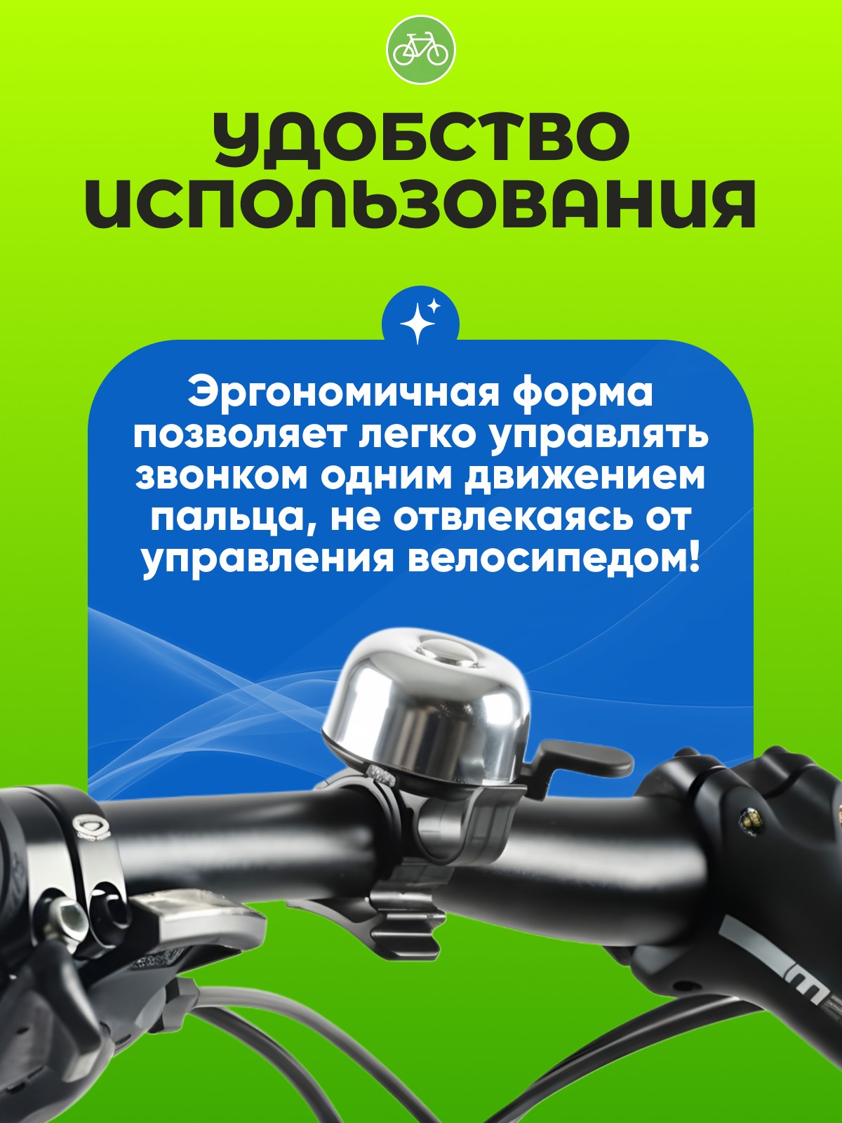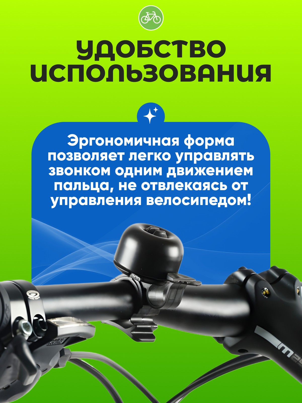 - Удобство использования: эргономичная форма позволяет легко управлять звонком одним движением пальца, не отвлекаясь от управления велосипедом.