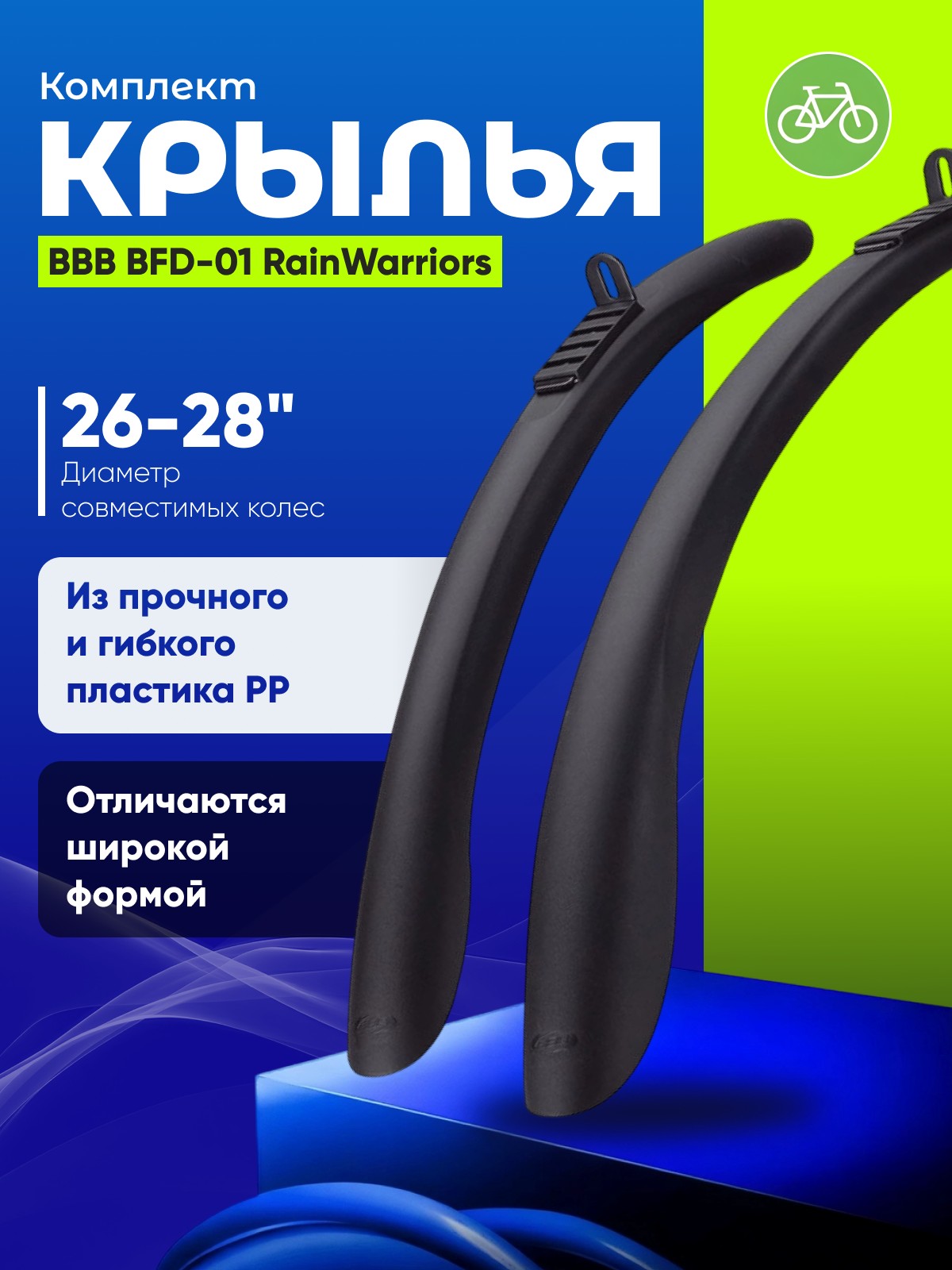 Комплект крыльев BBB BFD-01 RainWarriors - это идеальное решение для тех, кто ценит качество и надежность. Они обеспечат комфортную езду в любых погодных условиях, защищая вас и ваш велосипед от грязи и воды. Код товара: BFD-01.