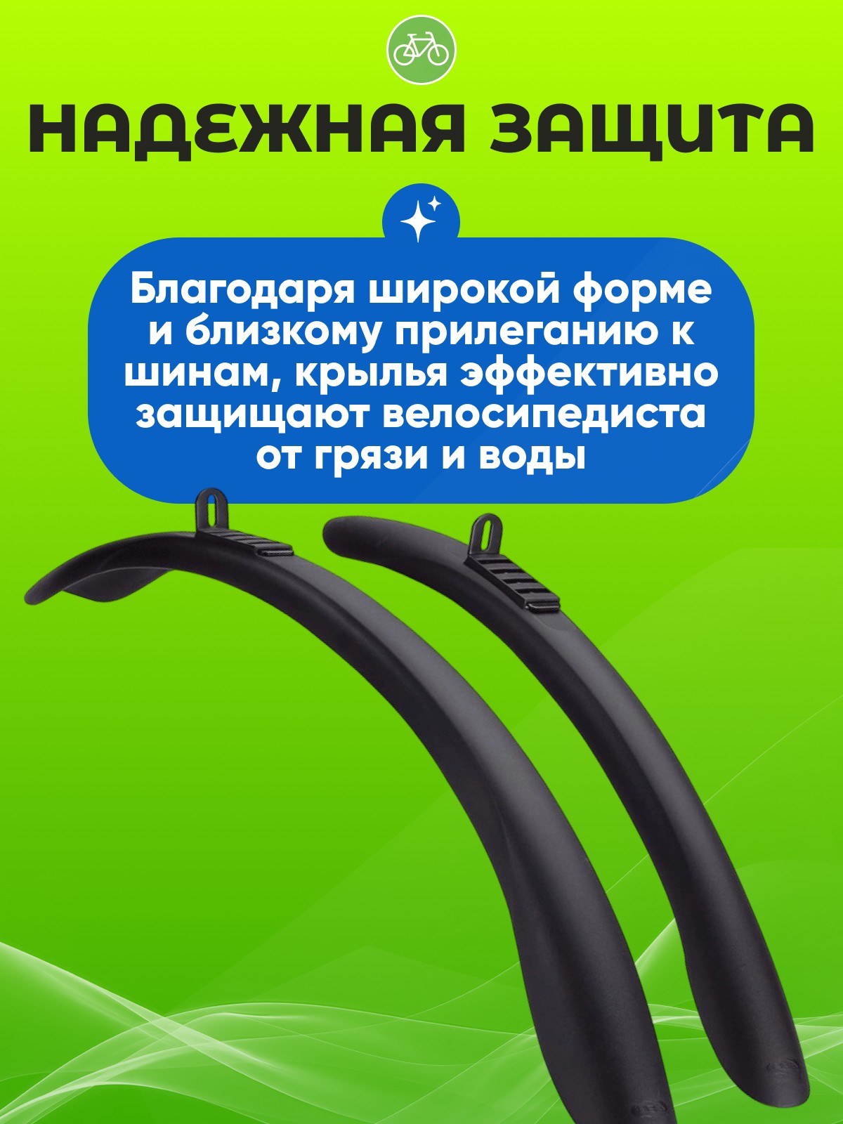 - Эффективная защита: Благодаря широкой форме и близкому прилеганию к шинам, крылья эффективно защищают велосипедиста от грязи и воды.