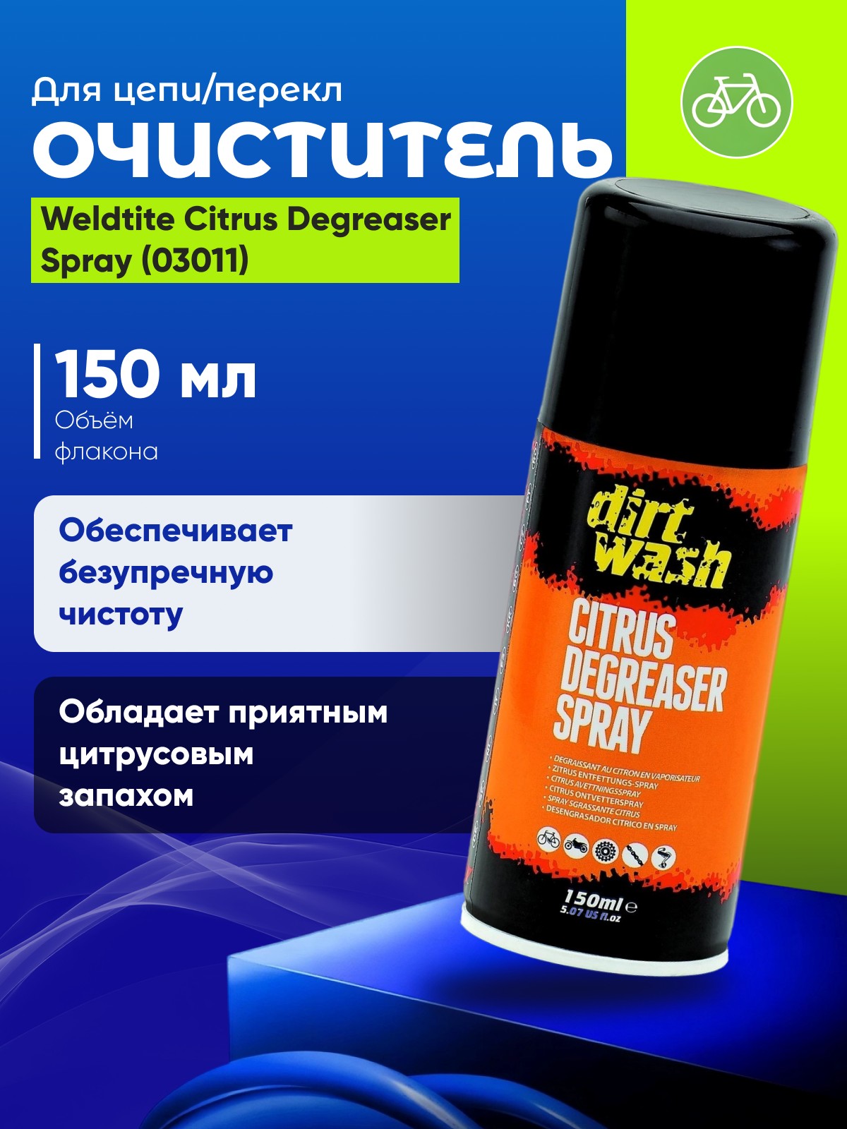 Weldtite Citrus Degreaser Spray 150 мл (03011) - ваш надежный помощник в поддержании велосипеда в идеальном состоянии. С его помощью вы сможете быстро и эффективно справиться с загрязнениями, продлевая срок службы ваших велокомпонентов и обеспечивая их безупречную работу.