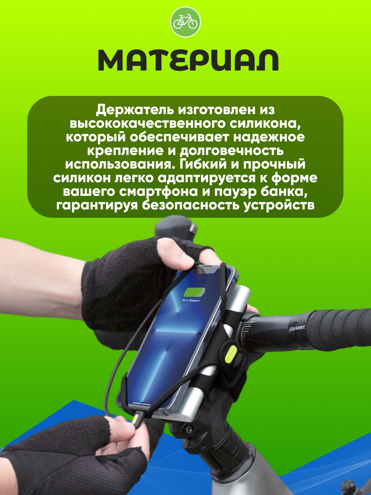 Держатель изготовлен из высококачественного силикона, который обеспечивает надежное крепление и долговечность использования. Гибкий и прочный силикон легко адаптируется к форме вашего смартфона и пауэр банка, гарантируя безопасность устройств.