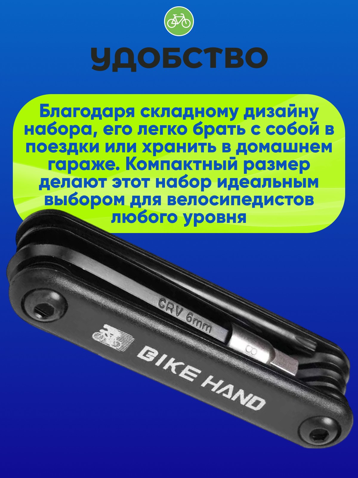 Благодаря складному дизайну набора, его легко брать с собой в поездки или хранить в домашнем гараже. Компактный размер делают этот набор идеальным выбором для велосипедистов любого уровня.