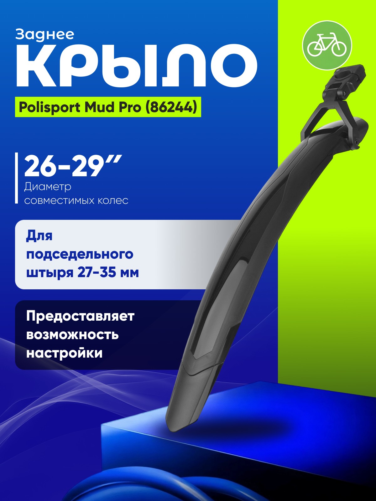 Заднее крыло Polisport Mud Pro – это идеальное решение для велосипедистов, ищущих надежную защиту от брызг и грязи в любых условиях. Оснащенное удобной и оптимизированной системой быстрого крепления, это крыло позволяет без усилий установить его на подседельный штырь диаметром от 27 до 35 мм, используя легкий в обращении эксцентрик. Внутренняя резиновая прокладка надежно защищает поверхность штыря от повреждений.