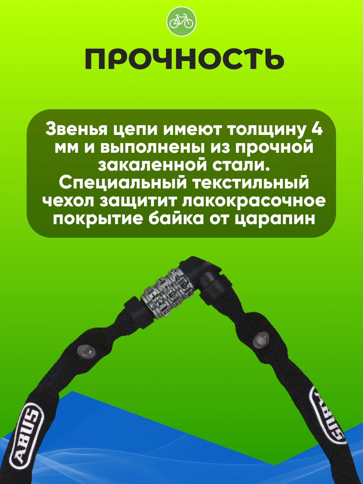 ABUS Web 1200/110- это надежный цепной велозамок немецкого производства, который поможет вам защитить велосипед от кражи в людных местах. Звенья цепи имеют толщину 4 мм и выполнены из прочной закаленной стали. Специальный текстильный чехол защитит лакокрасочное покрытие байка от царапин. Ключи не потребуются, поскольку на этой модели установлен трехзначный кодовый замок. Длина замка составляет 75 см. Вес - 360 грамм.