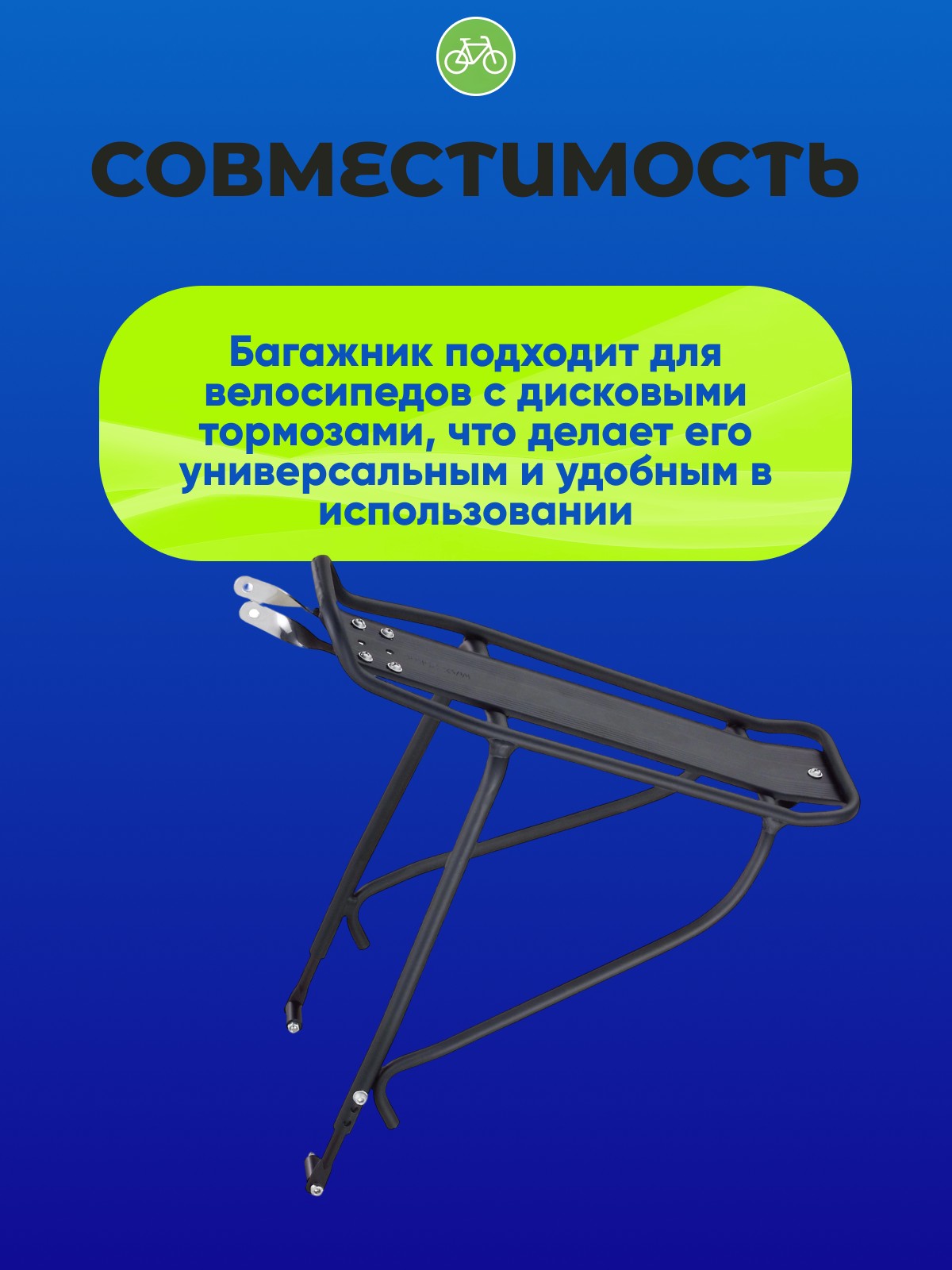 - Совместимость с дисковыми тормозами: Багажник подходит для велосипедов с дисковыми тормозами, что делает его универсальным и удобным в использовании.