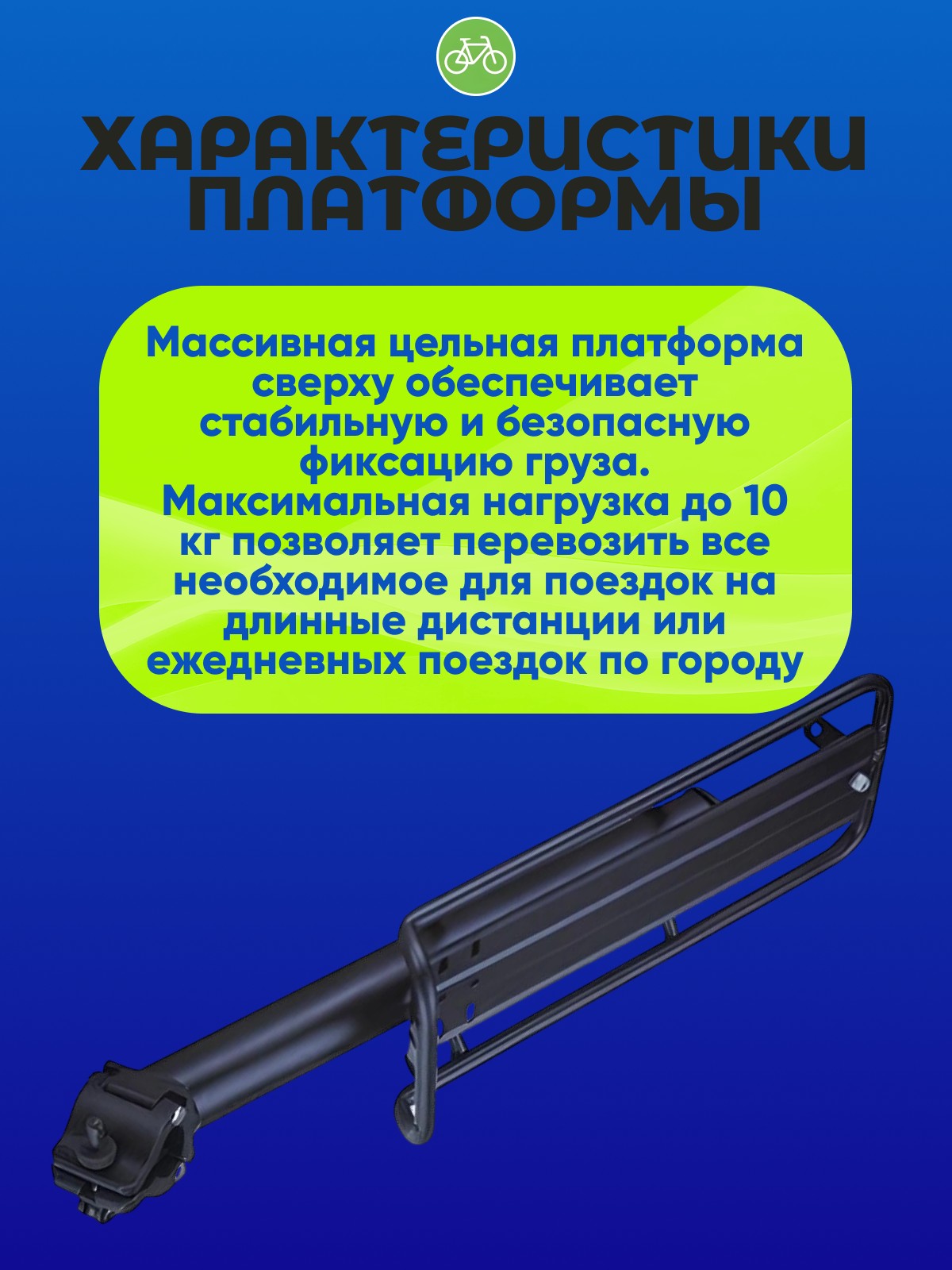 - Характеристики платформы: Массивная цельная платформа сверху обеспечивает стабильную и безопасную фиксацию груза. Максимальная нагрузка до 10 кг позволяет перевозить все необходимое для поездок на длинные дистанции или ежедневных поездок по городу.