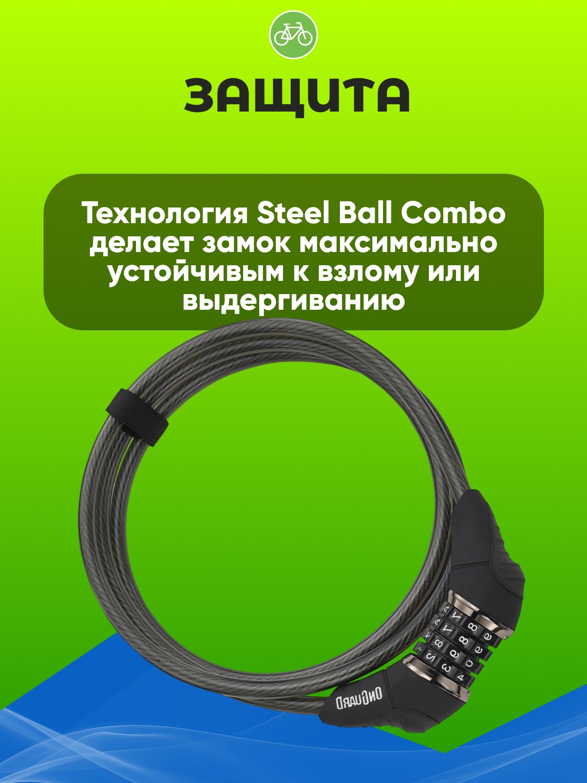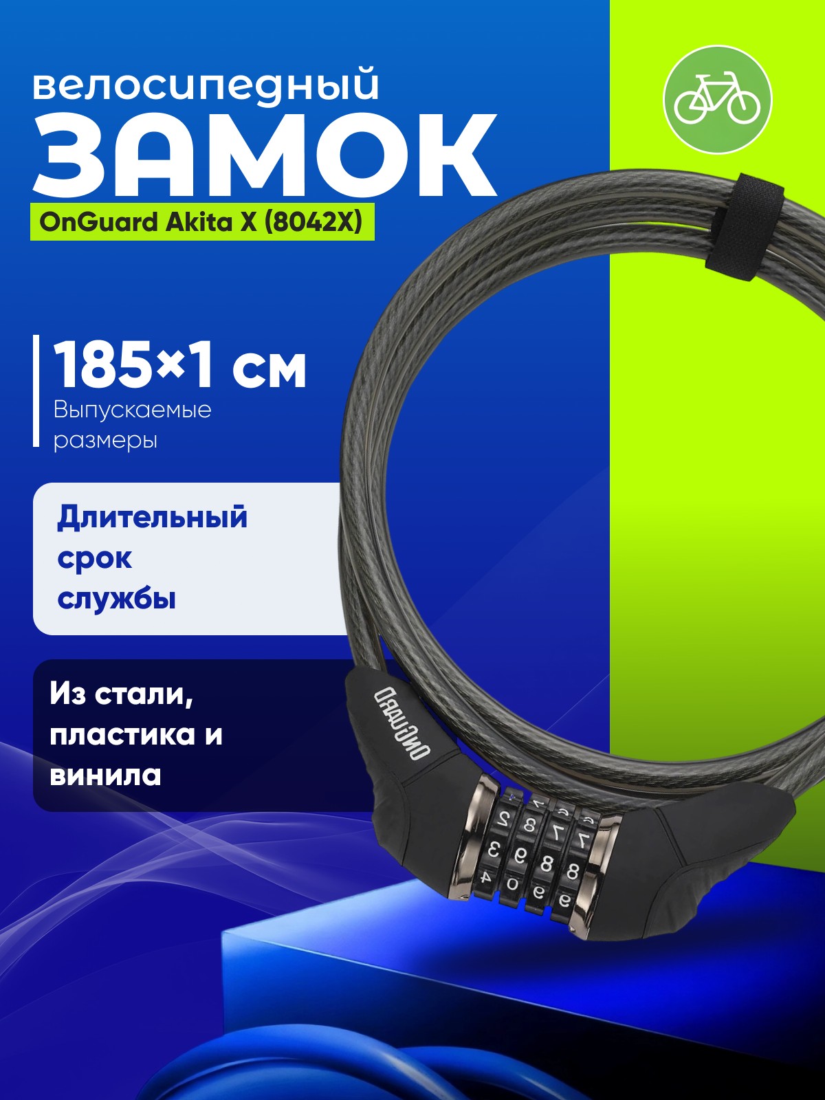 OnGuard Akita (8042X) - это удобный тросовый замок с четырехзначным кодовым механизмом, который обеспечит надежную защиту вашего велосипеда на городских стоянках. Технология Steel Ball Combo делает замок максимально устойчивым к взлому или выдергиванию. Витой стальной трос находится в виниловой рубашке, которая защищает лакокрасочное покрытие рамы от повреждений и царапин. Толщина троса с оплёткой составляет 10 мм. Общая длина троса - 1850 мм. Вес - 0,59 кг. В комплект также входят липучки для фиксации замка на велосипеде. Черный цвет.