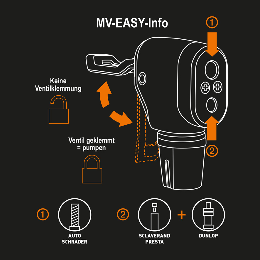 - Головка MV EASY с зажимом для всех типов вентилей (AV/SV/DV)