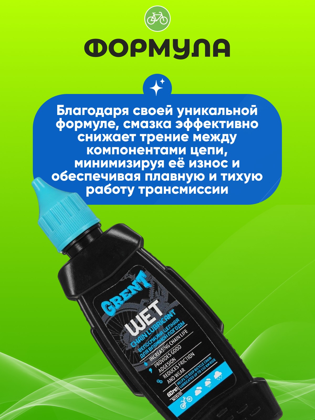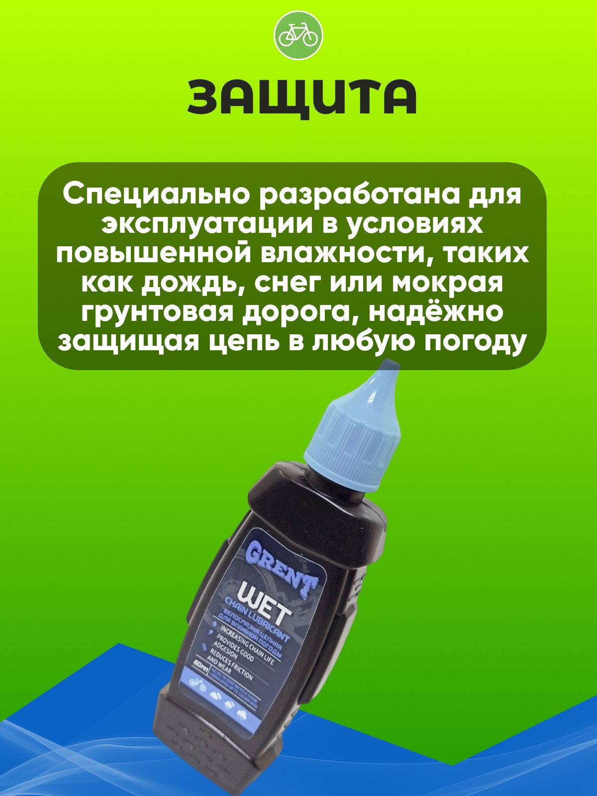 Смазка для цепи Grent Wet Lube обеспечивает надежную защиту в дождь, снег и на мокрых грунтовых трассах. Снижает трение, отталкивает грязь, пыль и песок, сохраняя цепь чистой и обеспечивая тихую и эффективную работу трансмиссии.
