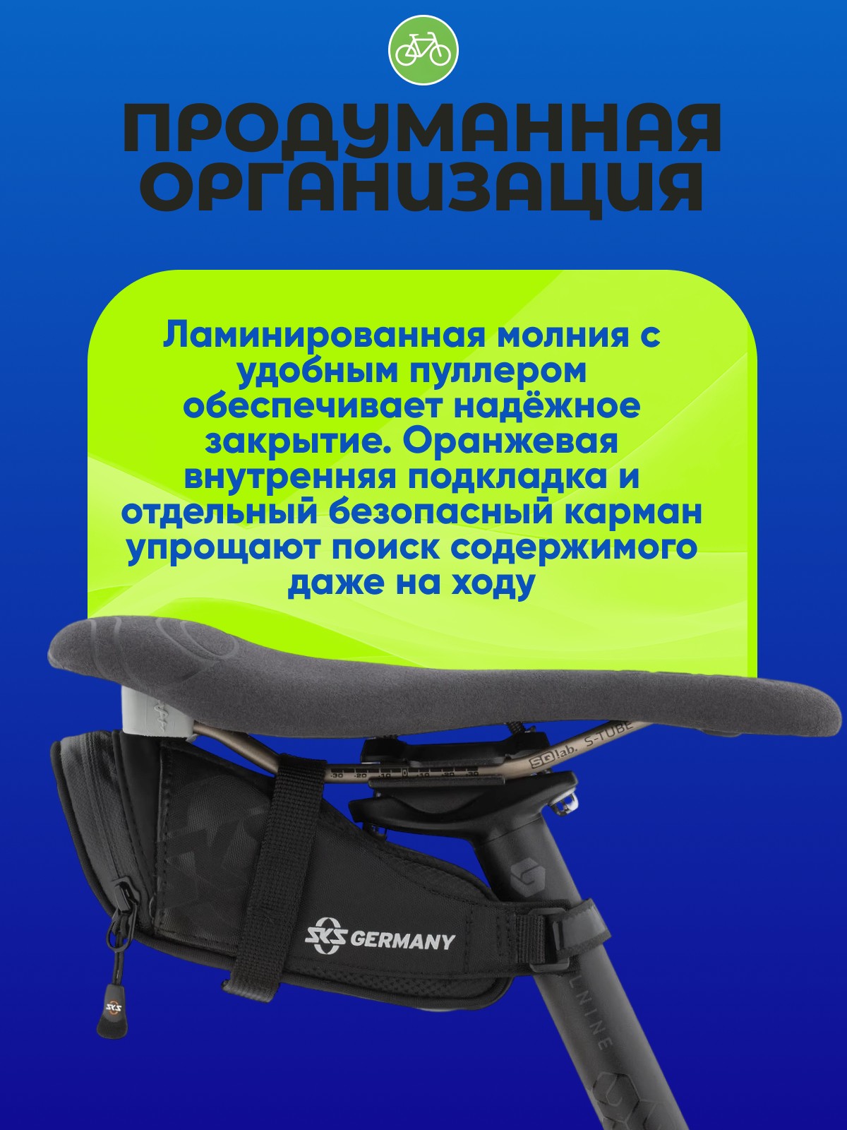 Лёгкая и аэродинамичная сумка Racer идеально подходит для гоночных велосипедов благодаря компактной форме и прочной водостойкой ткани. Внутри — достаточно места для инструментов, запасных камер и мелочей. Светоотражающий логотип SKS повышает видимость в темноте, а ламинированная молния с удобным пуллером обеспечивает надёжное закрытие. Оранжевая внутренняя подкладка и отдельный безопасный карман упрощают поиск содержимого даже на ходу.