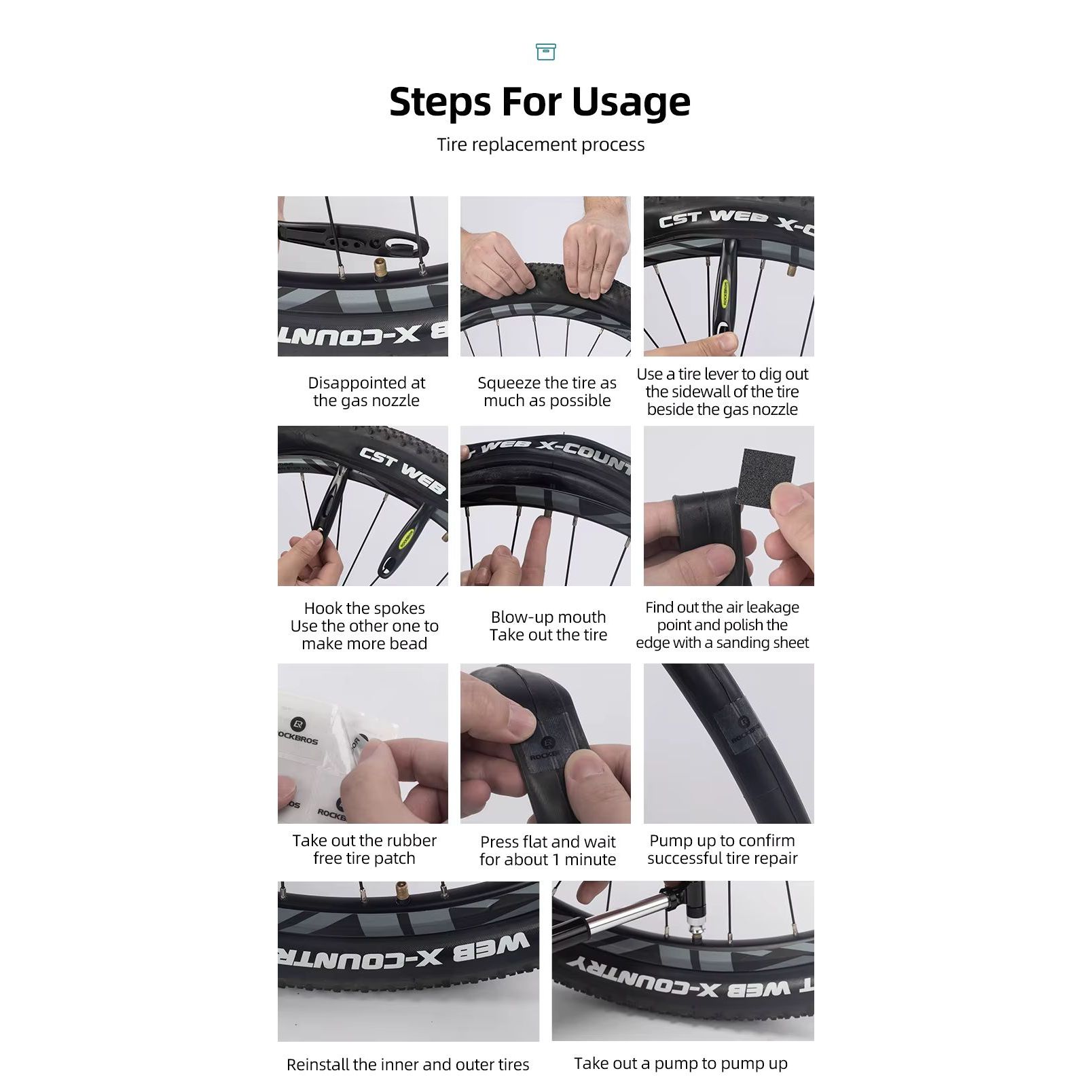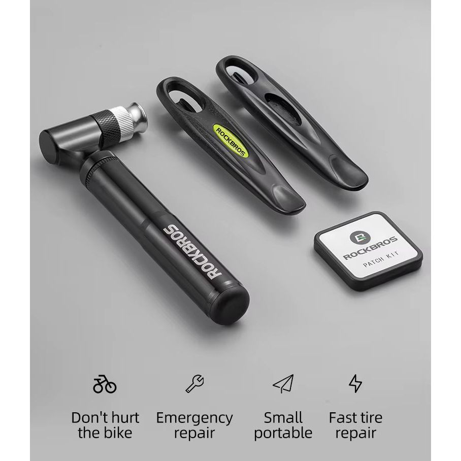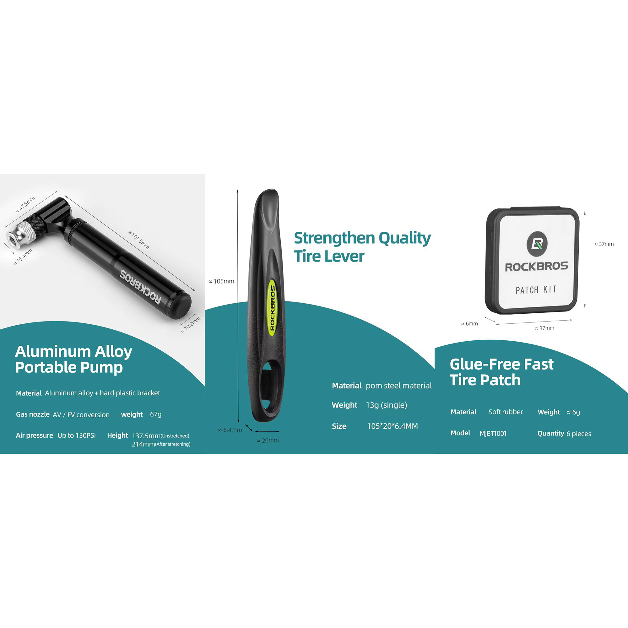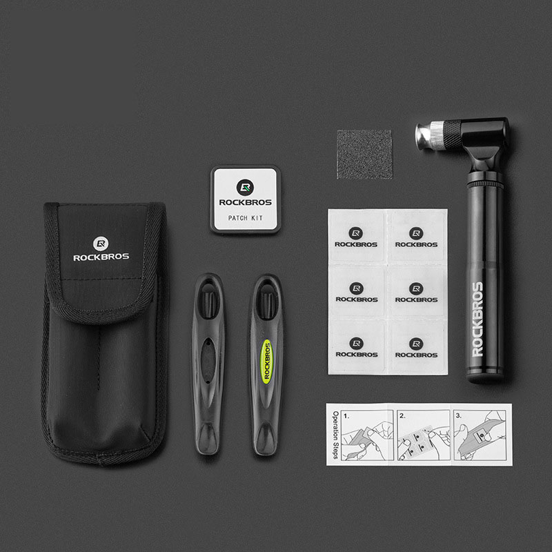 Набор Rockbros B-80 — полезный комплект, в который входит всё необходимое для быстрого ремонта проколотого колеса в дороге. В компактной и удобной сумке размещены сверхлёгкий насос с универсальным вентилем AV/FV, две прочные монтажки для снятия покрышек и ремонтный комплект из 6 заплаток с наждачной шкуркой. Идеальное решение для велосипедистов, ценящих надёжность и мобильность.