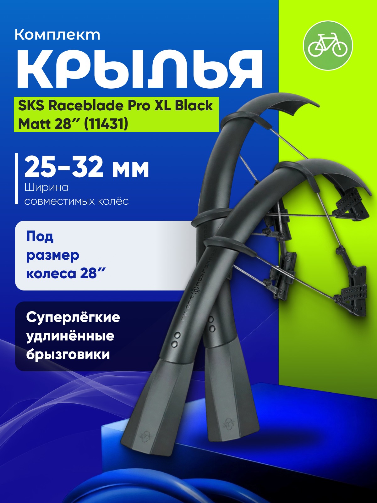 Комплект крыльев SKS Raceblade Pro XL Black Matt 28″ (11431) — современное решение для шоссейных и циклокроссовых велосипедов с колёсами шириной 25–32 мм. Благодаря инновационной быстросъёмной системе их легко установить даже на аэродинамические вилки. Экстрадлинные брызговики из сверхлёгкого материала обеспечивают максимальную защиту от грязи и воды, а регулируемые стойки позволяют точно подогнать крылья под радиус колеса. Комплект включает резиновые фиксаторы, пластиковые стяжки и защитные наклейки для рамы.