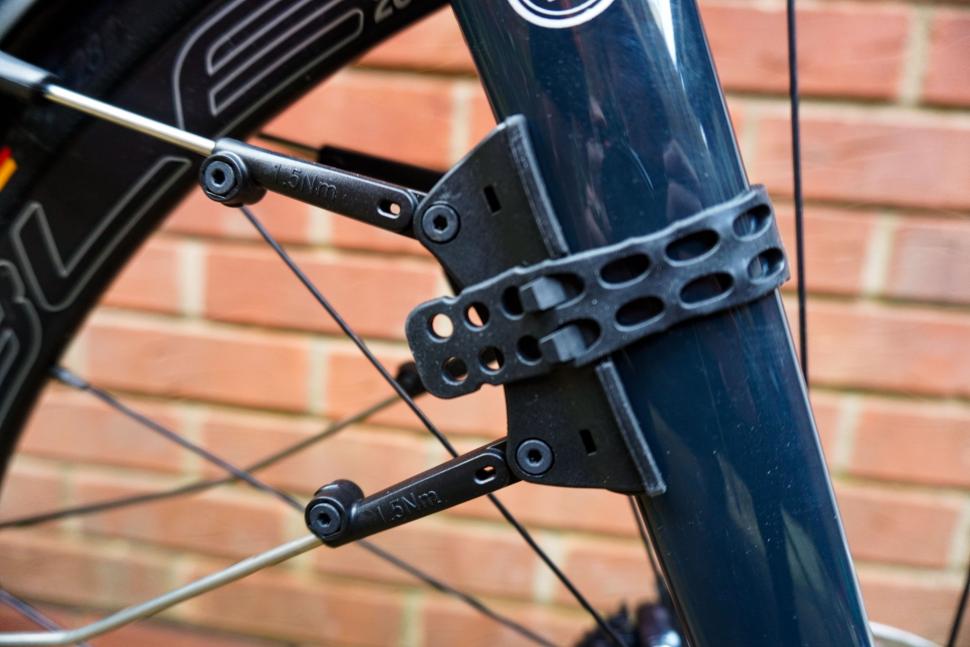 - Совместимость с колёсами 25–32 мм и велосипедами с дисковыми/калиперными тормозами