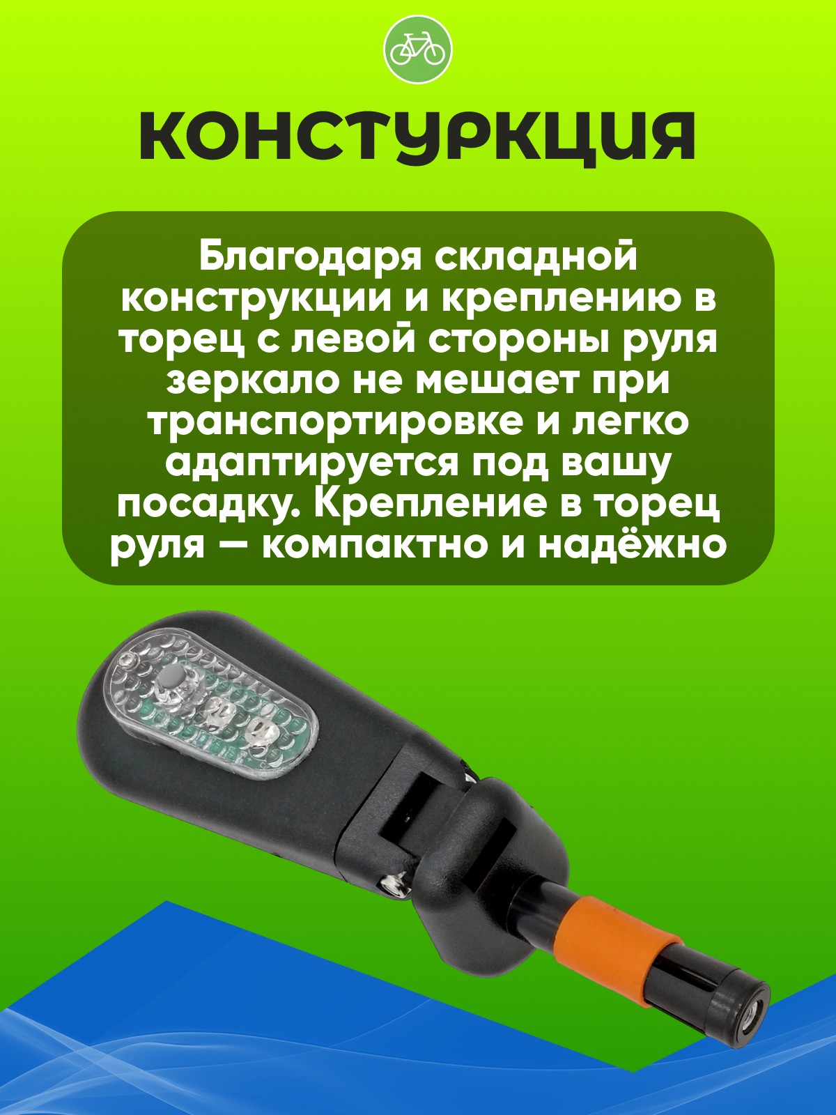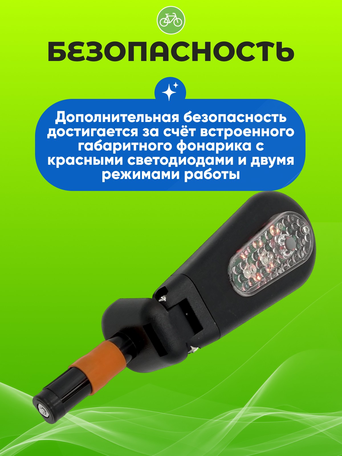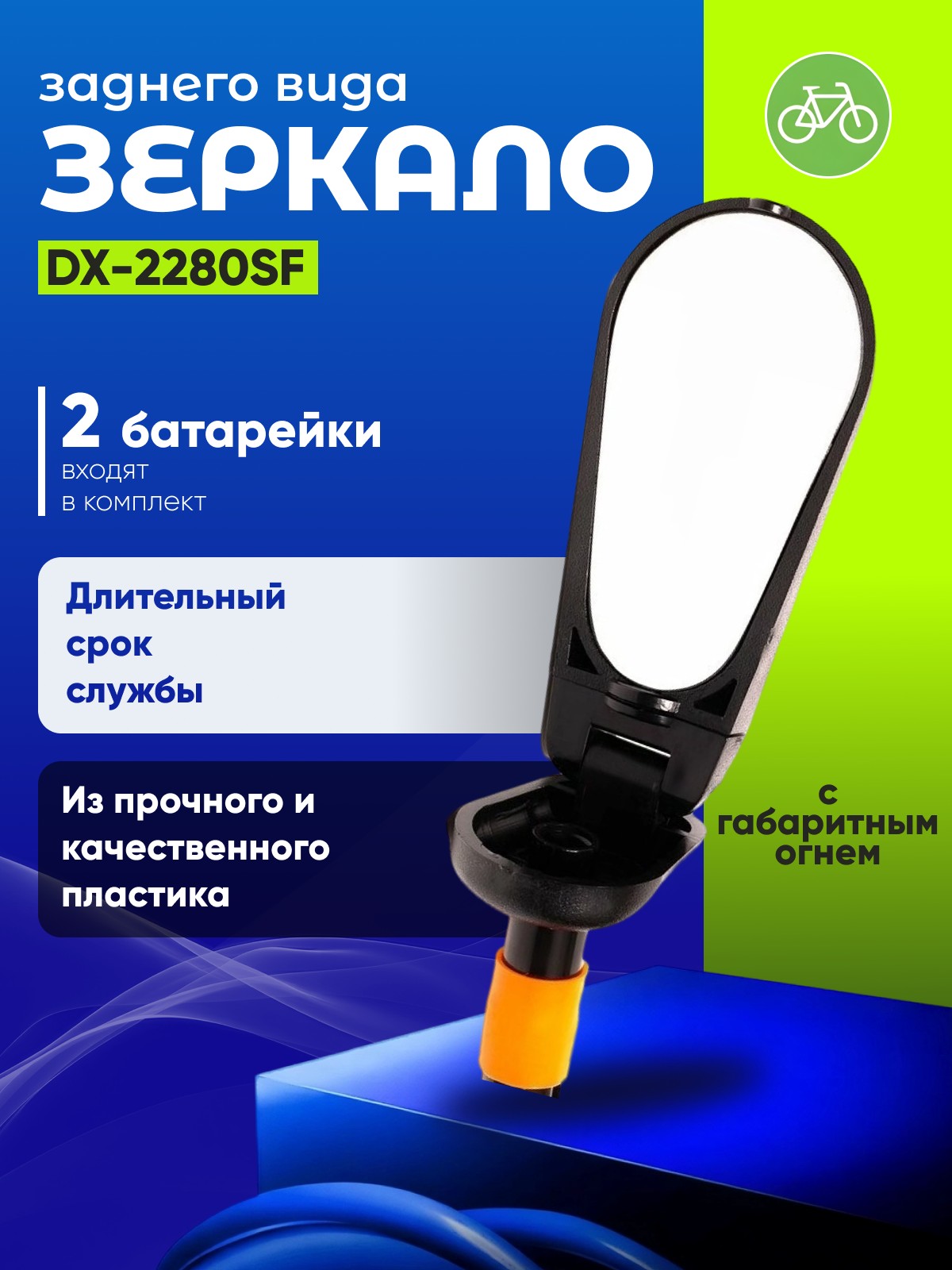 Велозеркало DX-2280SF — надёжный помощник для безопасной езды по дорогам общего пользования. Оно обеспечивает чёткий обзор сзади: вы вовремя заметите приближающийся автомобиль или сможете контролировать положение товарищей при групповой поездке. Дополнительная безопасность достигается за счёт встроенного габаритного фонарика с красными светодиодами и двумя режимами работы, который делает вас заметным для других участников движения даже в сумерках. Благодаря складной конструкции и креплению в торец с левой стороны руля зеркало не мешает при транспортировке и легко адаптируется под вашу посадку. Батарейки входят в комплект.