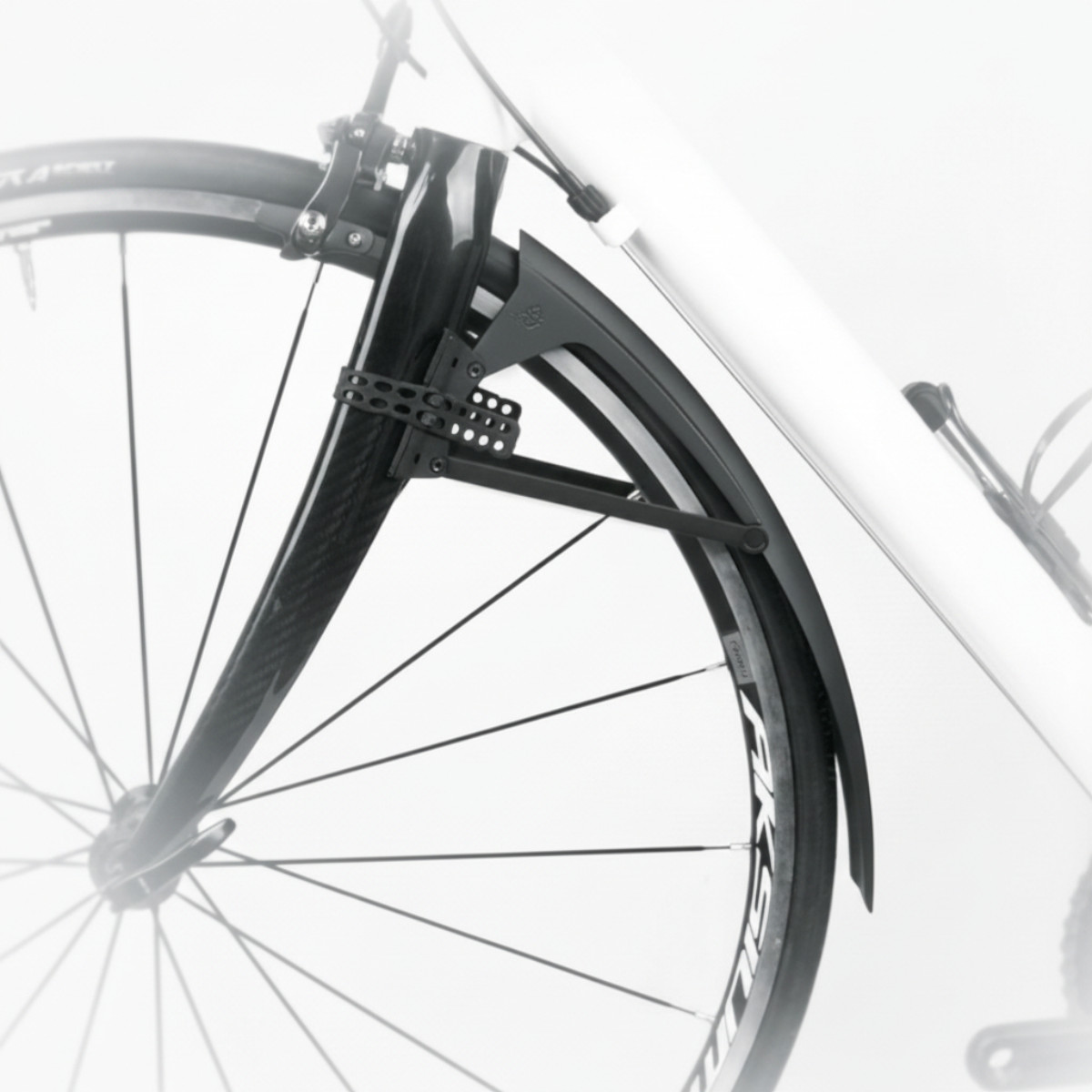 - Оснащено интеллектуальной двухшарнирной системой быстрого крепления, совместимой даже с аэродинамическими вилками.