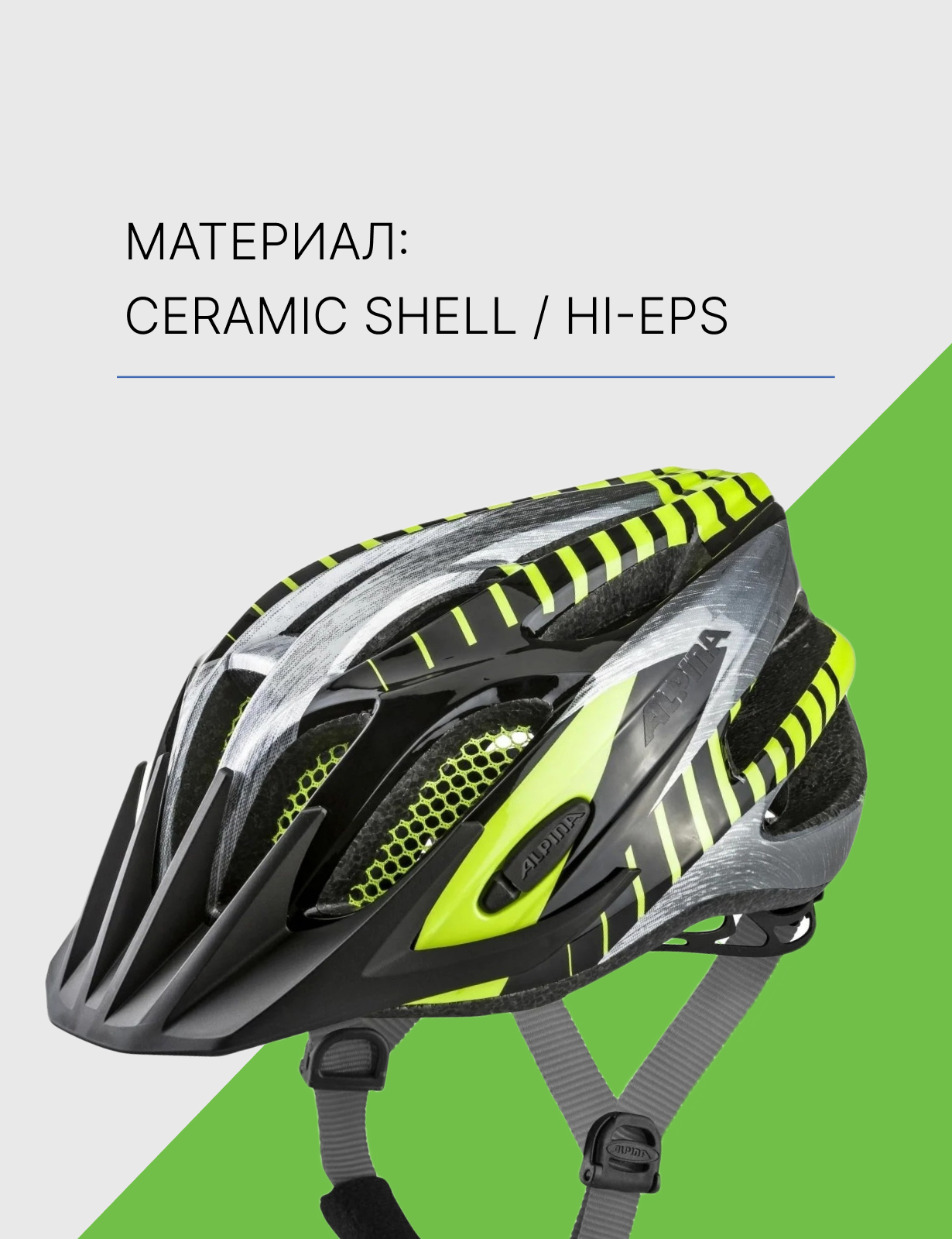 Шлем изготовлен с использованием технологии Inmold: внешний слой из прочного поликарбоната соединен под высоким давлением и температурой с внутренним ударопоглощающим слоем из вспененного полистирола. Это обеспечивает надежную защиту головы при падениях и ударах.