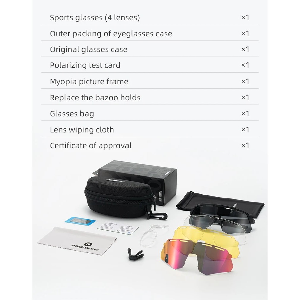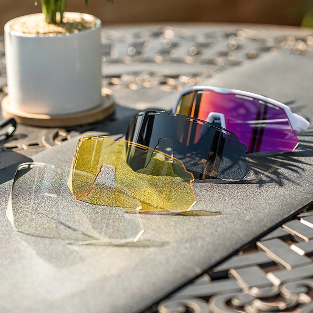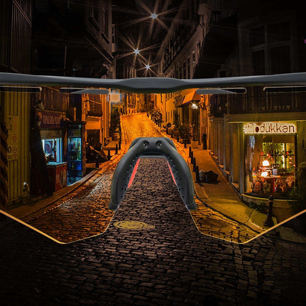 - 4 сменные линзы в комплекте — для солнечной, пасмурной погоды, сумерек и дождя