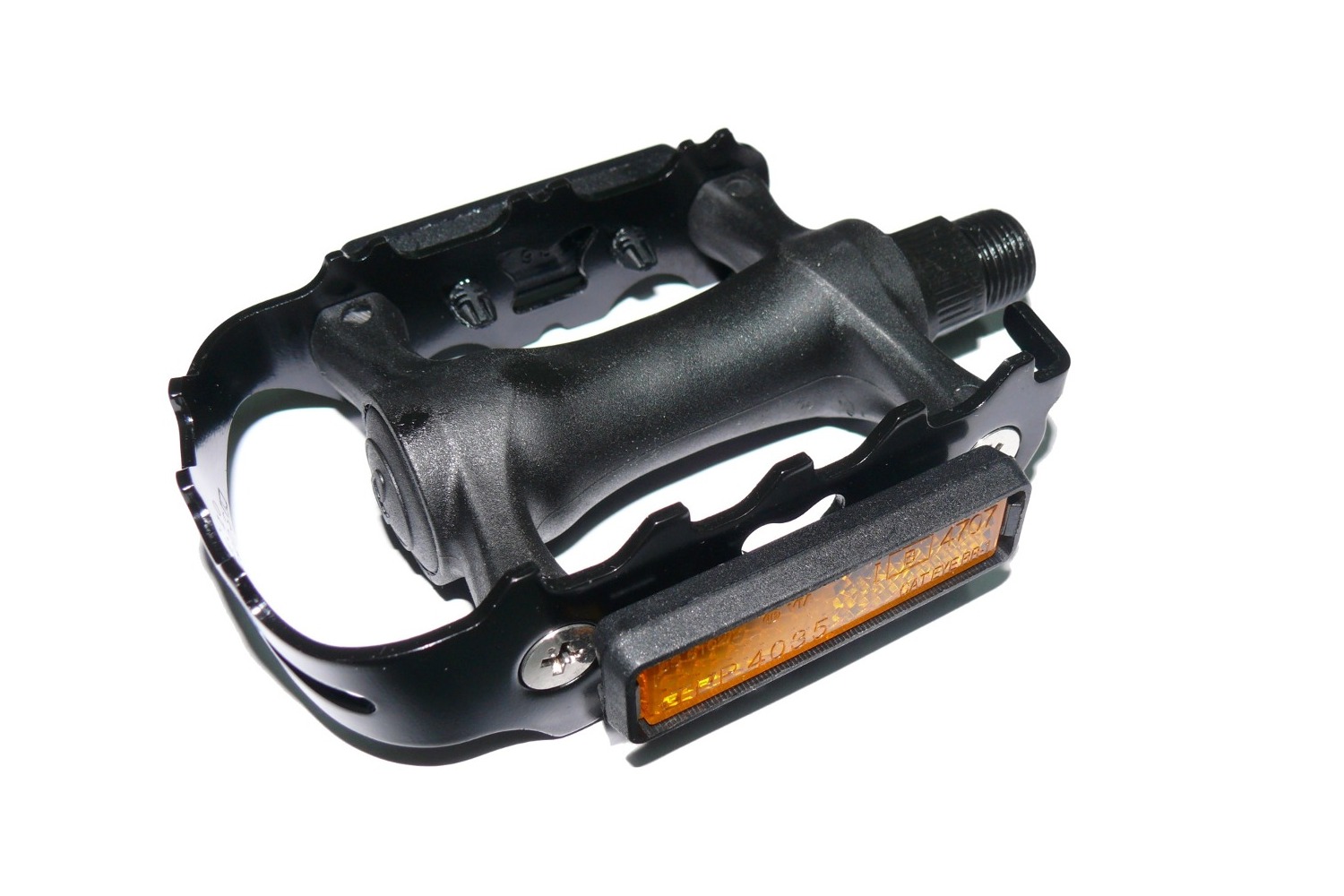 Надежные педали VP-990 - это доступное по цене и качеству приобретение для вашего горного байка. Ось педали имеет резьбу стандарта 9/16ʺ и выполнена из стали. Корпус педали изготовлен из пластика, на котором закреплена алюминиевая клетка с небольшими шипами. Педали комплектуются двумя съемными светоотражателями. Вес - 375 г (на пару). Цвет: черный.